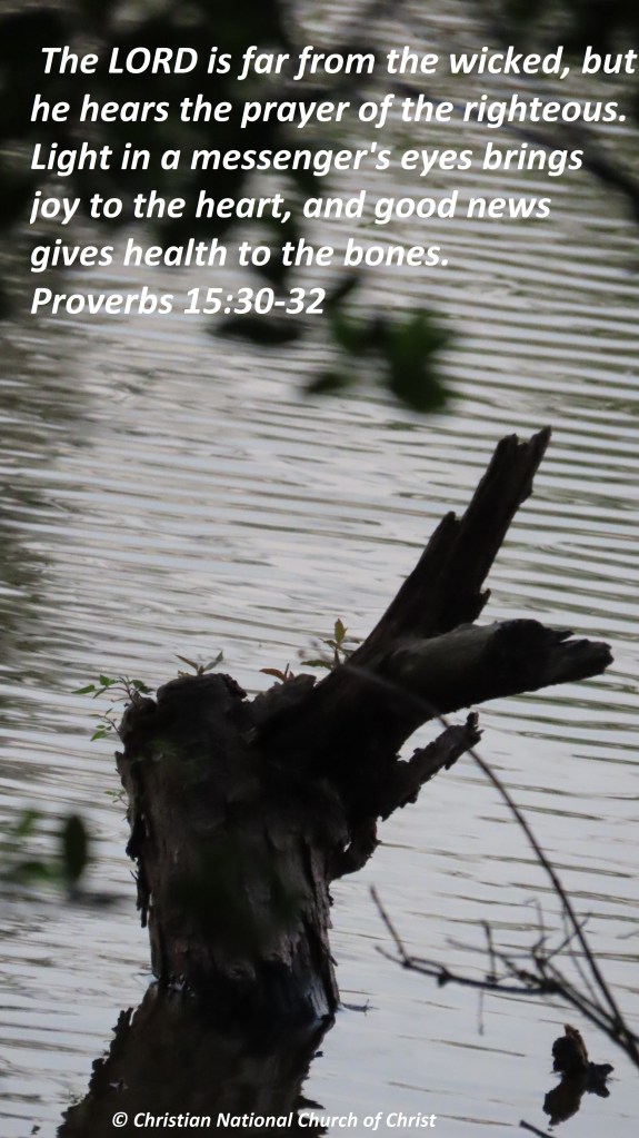 Uncategorized “Blessing of Good Health” Date: April 26, 2021Author: © Christian National Church of Christ 0 Comments The LORD is far from the wicked, but he hears the prayer of the righteous. Light in a messenger’s eyes brings joy to the heart, and good news gives health to the bones. Proverbs 15:30-32 Share this: Share on X (Opens in new window) X Share on Facebook (Opens in new window) Facebook Like Loading... Related