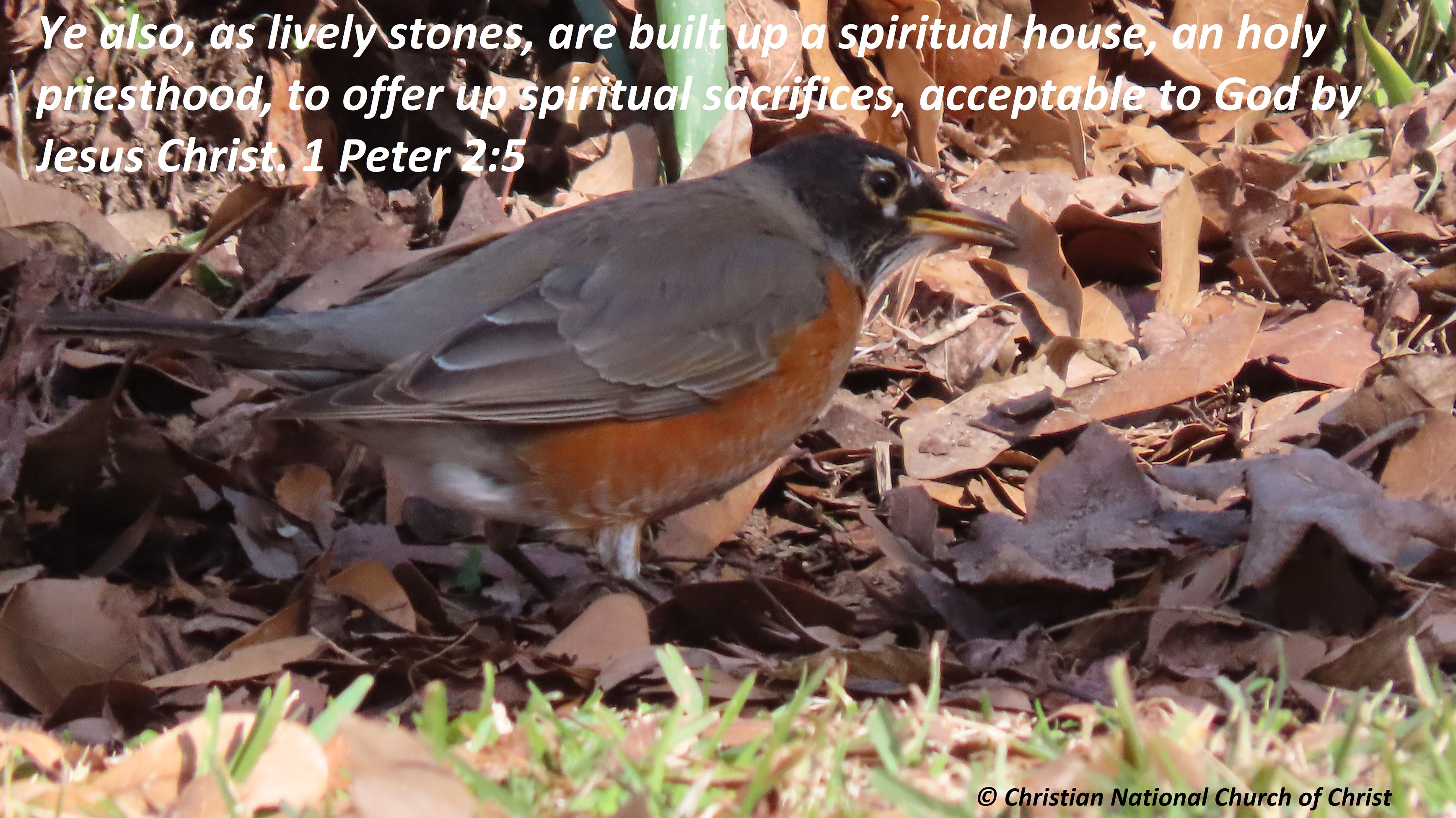 Uncategorized “The Lord Will Rescue” Date: May 8, 2021Author: © Christian National Church of Christ 0 Comments Ye also, as lively stones, are built up a spiritual house, an holy priesthood, to offer up spiritual sacrifices, acceptable to God by Jesus Christ. 1 Peter 2:5 Share this: Share on X (Opens in new window) X Share on Facebook (Opens in new window) Facebook Like Loading... Related
