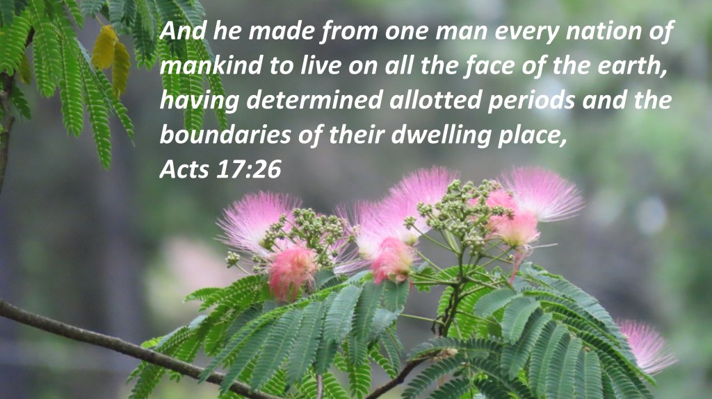 And he made from one man every nation of mankind to live on all the face of the earth, having determined allotted periods and the boundaries of their dwelling place,