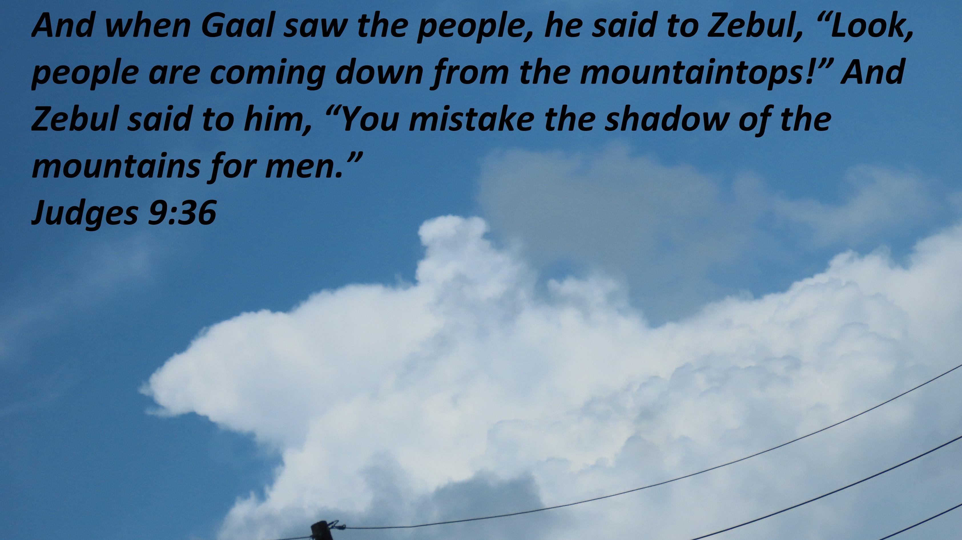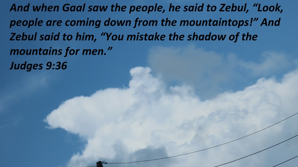 Uncategorized “Shadow” Date: May 28, 2021Author: © Christian National Church of Christ 0 Comments And when Gaal saw the people, he said to Zebul, “Look, people are coming down from the mountaintops!” And Zebul said to him, “You mistake the shadow of the mountains for men.” Judges 9:36 Share this: Share on X (Opens in new window) X Share on Facebook (Opens in new window) Facebook Like Loading... Related