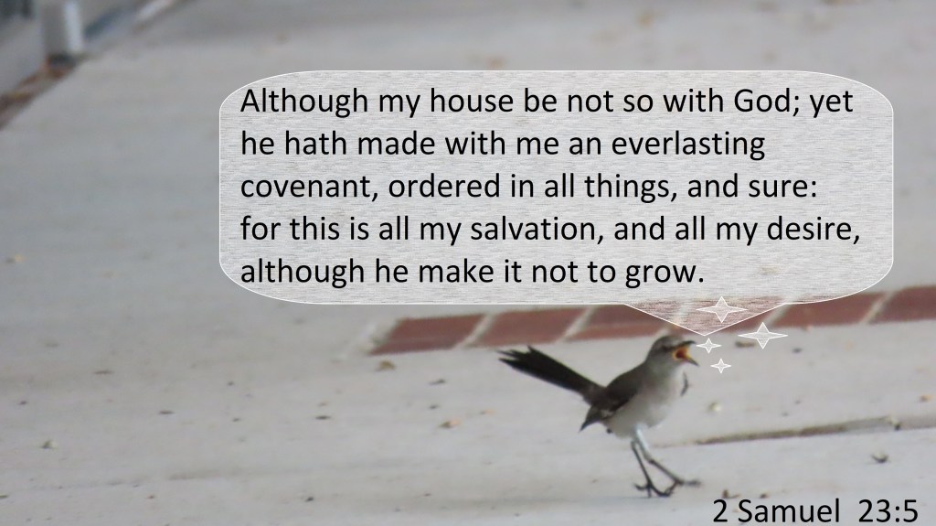 Uncategorized “Between God And I” Date: June 18, 2021Author: © Christian National Church of Christ 0 Comments Although my house be not so with God; yet he hath made with me an everlasting covenant, ordered in all things, and sure: for this is all my salvation, and all my desire, although he make it not to grow. 2 Samuel 23:5 Share this: Share on X (Opens in new window) X Share on Facebook (Opens in new window) Facebook Like Loading... Related