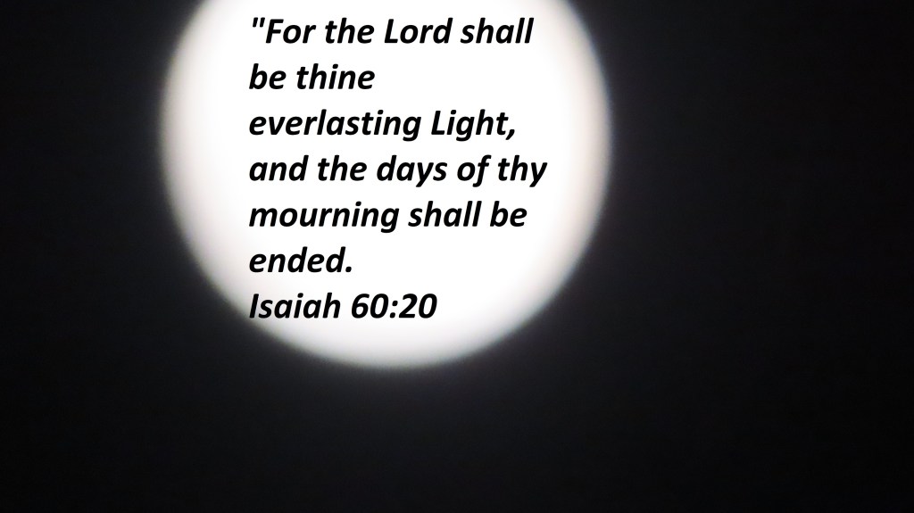 Uncategorized “Everlasting Light” Date: June 25, 2021Author: © Christian National Church of Christ 0 Comments “For the Lord shall be thine everlasting Light, and the days of thy mourning shall be ended.” Isaiah 60:20 Share this: Share on X (Opens in new window) X Share on Facebook (Opens in new window) Facebook Like Loading... Related