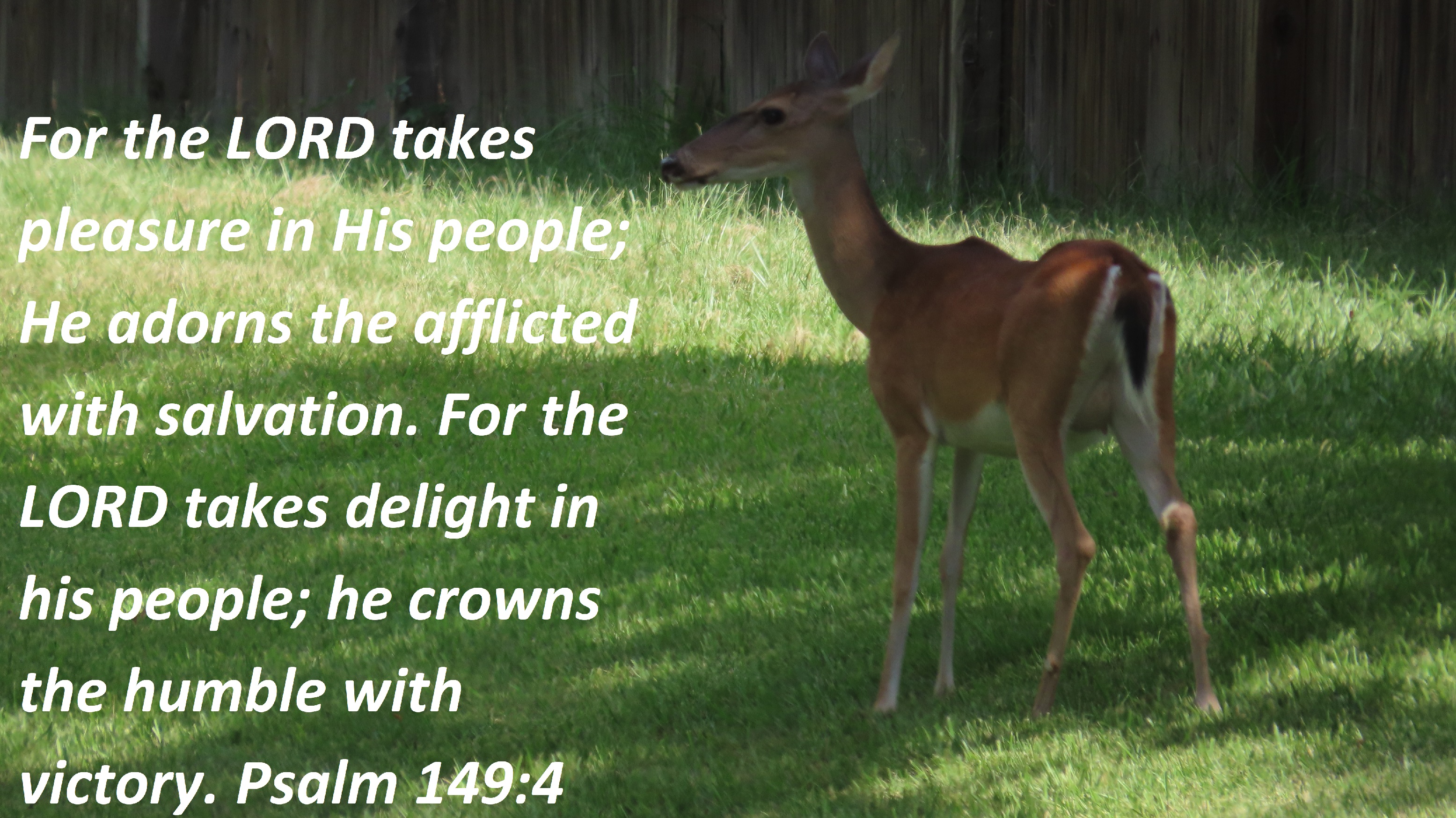Uncategorized “Victory In Jesus’s Freedom” Date: July 24, 2021Author: © Christian National Church of Christ 0 Comments For the LORD takes pleasure in His people; He adorns the afflicted with salvation. For the LORD takes delight in his people; he crowns the humble with victory. Psalm 149:4 Share this: Share on X (Opens in new window) X Share on Facebook (Opens in new window) Facebook Like Loading... Related