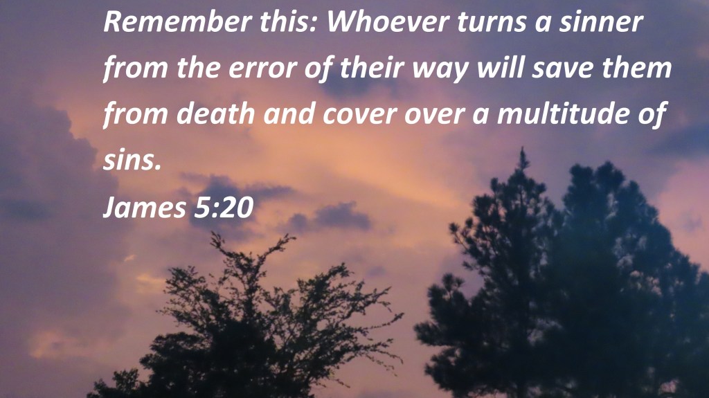 Uncategorized ” Be The Difference To Someone” Date: July 31, 2021Author: © Christian National Church of Christ 0 Comments Remember this: Whoever turns a sinner from the error of their way will save them from death and cover over a multitude of sins. James 5:20 Share this: Share on X (Opens in new window) X Share on Facebook (Opens in new window) Facebook Like Loading... Related