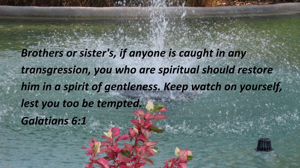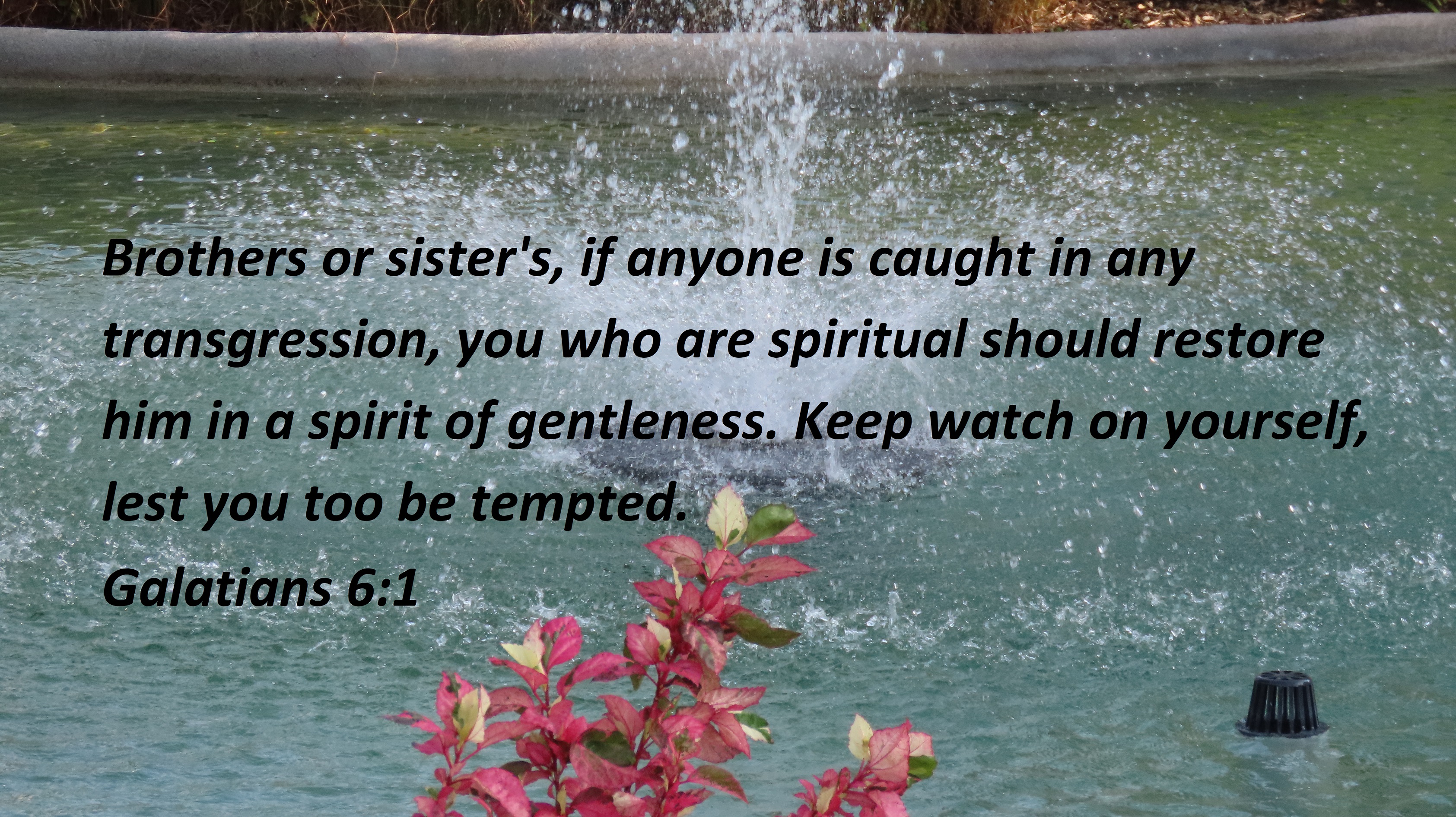 Uncategorized “Be The Difference One Needs” Date: August 1, 2021Author: © Christian National Church of Christ 0 Comments Brothers or sister’s, if anyone is caught in any transgression, you who are spiritual should restore him in a spirit of gentleness. Keep watch on yourself, lest you too be tempted. Galatians 6:1 Share this: Share on X (Opens in new window) X Share on Facebook (Opens in new window) Facebook Like Loading... Related