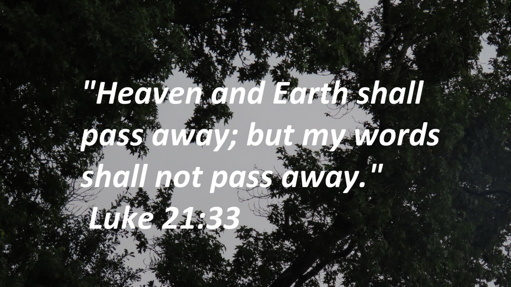 Uncategorized “God Word Secure” Date: August 11, 2021Author: © Christian National Church of Christ 0 Comments “Heaven and Earth shall pass away; but my words shall not pass away.” Luke 21:33 Share this: Share on X (Opens in new window) X Share on Facebook (Opens in new window) Facebook Like Loading... Related
