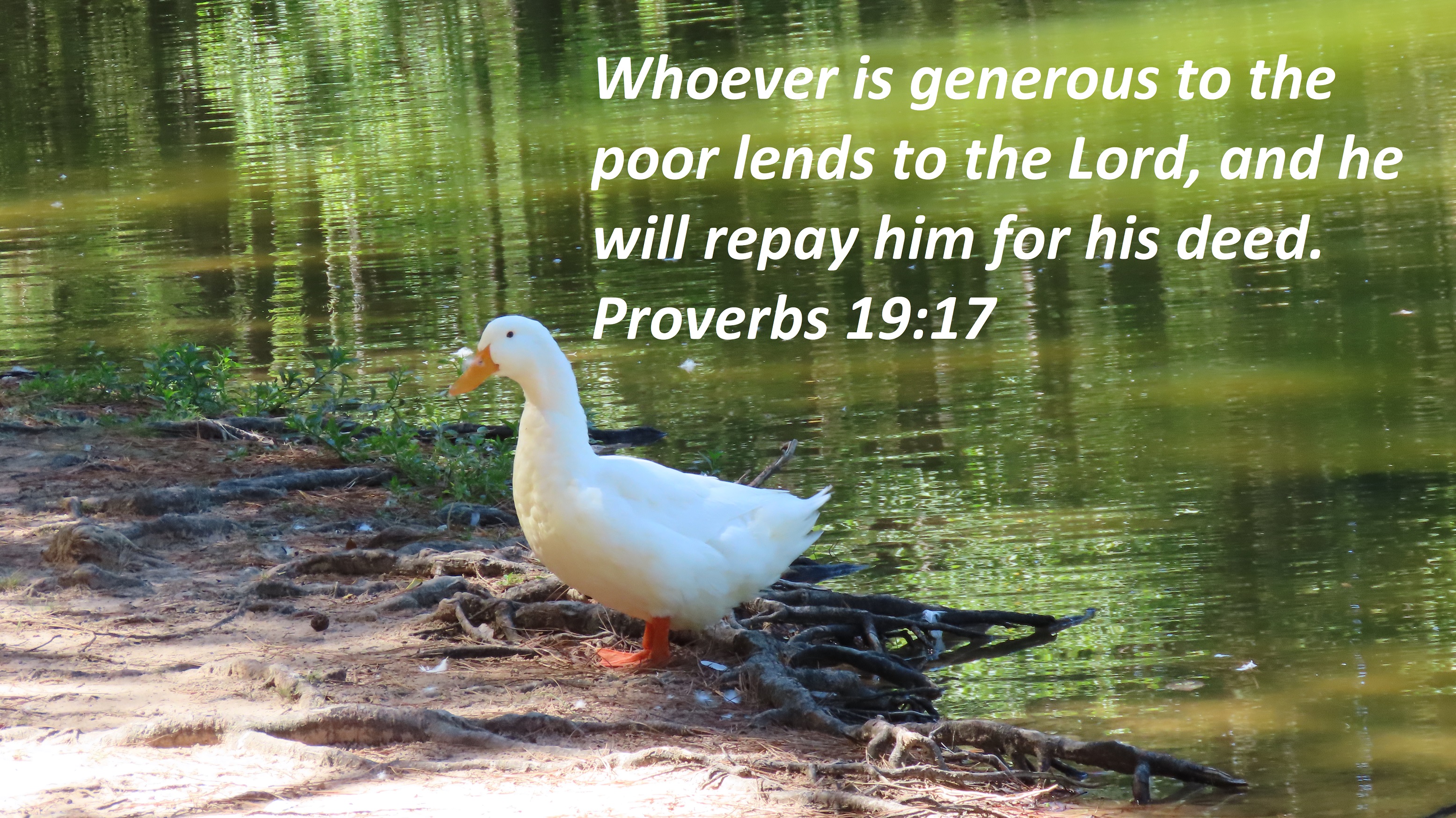 Uncategorized “Helping Others” Date: August 18, 2021Author: © Christian National Church of Christ 0 Comments Whoever is generous to the poor lends to the Lord, and he will repay him for his deed. Proverbs 19:17 Share this: Share on X (Opens in new window) X Share on Facebook (Opens in new window) Facebook Like Loading... Related
