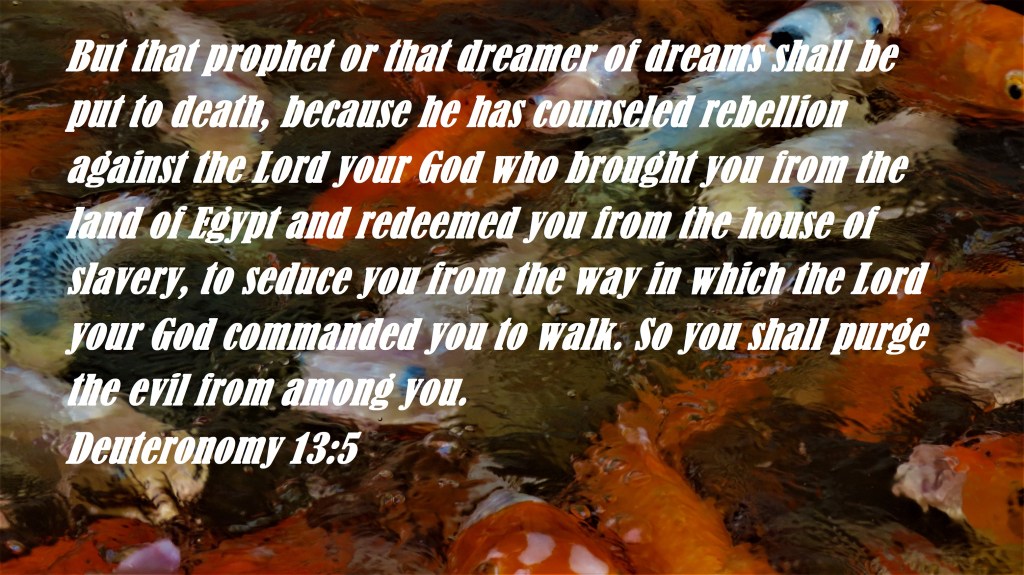 But that prophet or that dreamer of dreams shall be put to death, because he has counseled rebellion against the Lord your God who brought you from the land of Egypt and redeemed you from the house of slavery, to seduce you from the way in which the Lord your God commanded you to walk. So you shall purge the evil from among you.