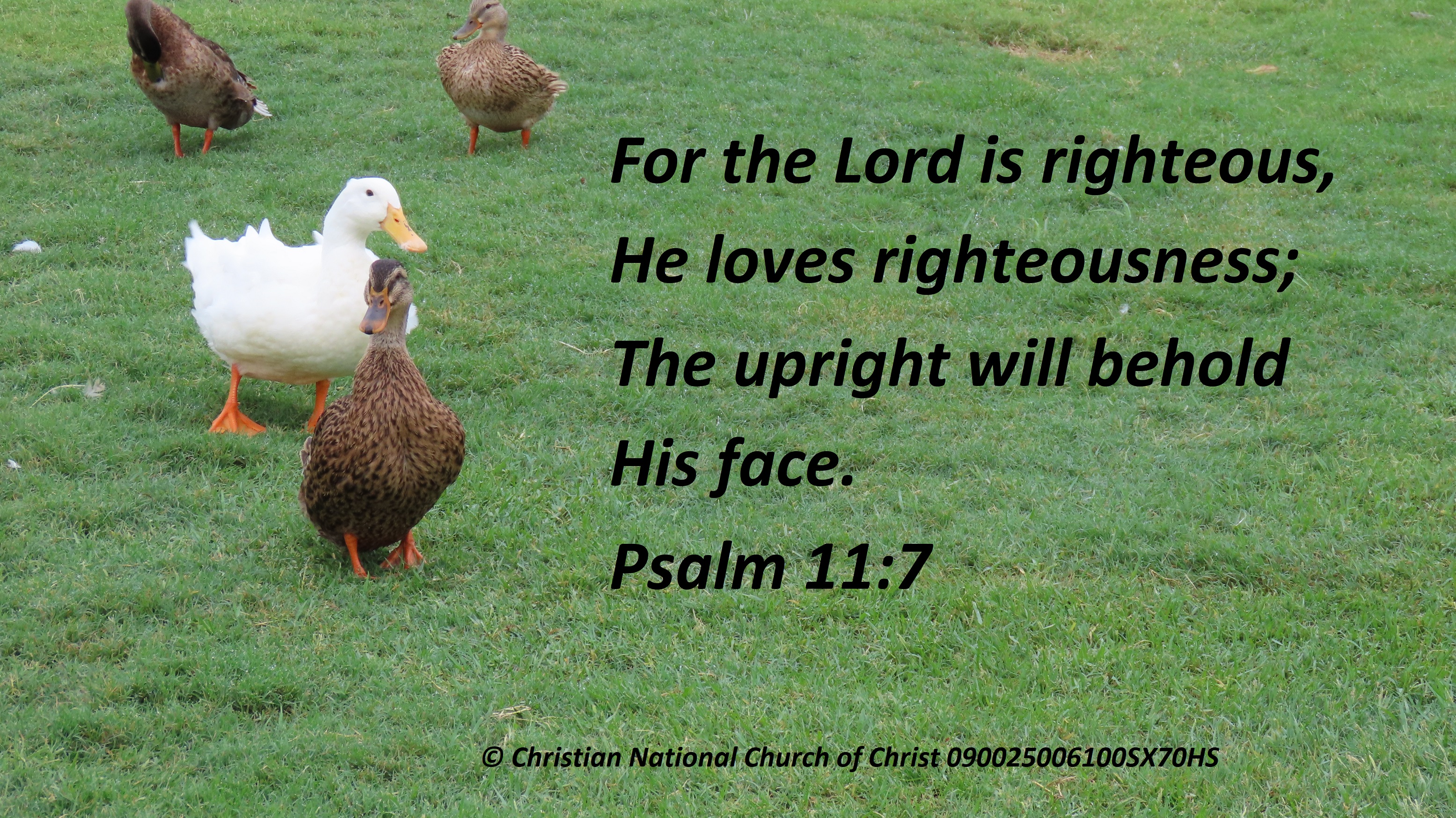 Uncategorized “Up Righteousness” Date: September 17, 2021Author: © Christian National Church of Christ 0 Comments For the Lord is righteous, He loves righteousness;The upright will behold His face.Psalm 11:7 Share this: Click to share on X (Opens in new window) X Click to share on Facebook (Opens in new window) Facebook Like Loading... Related