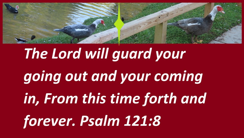 Uncategorized “God Guards” Date: October 2, 2021Author: © Christian National Church of Christ 0 Comments The Lord will guard your going out and your coming inFrom this time forth and forever. Psalm 121:8 Share this: Share on X (Opens in new window) X Share on Facebook (Opens in new window) Facebook Like Loading... Related