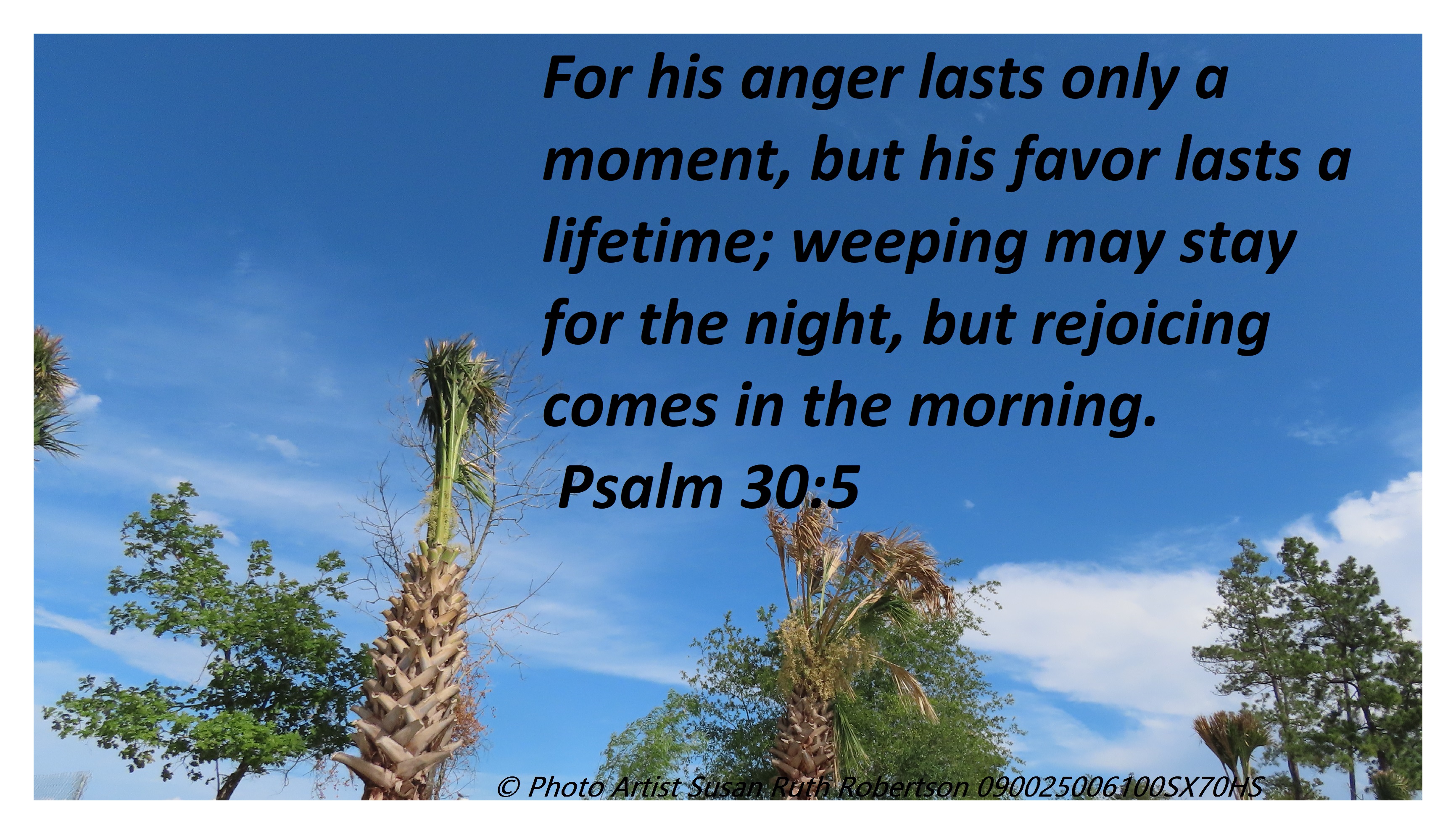 Uncategorized “Morning Joy” Date: November 1, 2021Author: © Christian National Church of Christ 0 Comments For his anger lasts only a moment, but his favor lasts a lifetime; weeping may stay for the night, but rejoicing comes in the morning. Psalm 30:5 Share this: Share on X (Opens in new window) X Share on Facebook (Opens in new window) Facebook Like Loading... Related