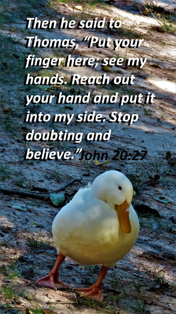 Uncategorized “Just Believe” Date: November 4, 2021Author: © Christian National Church of Christ 0 Comments Then he said to Thomas, “Put your finger here; see my hands. Reach out your hand and put it into my side. Stop doubting and believe.” John 20:27 Share this: Share on X (Opens in new window) X Share on Facebook (Opens in new window) Facebook Like Loading... Related