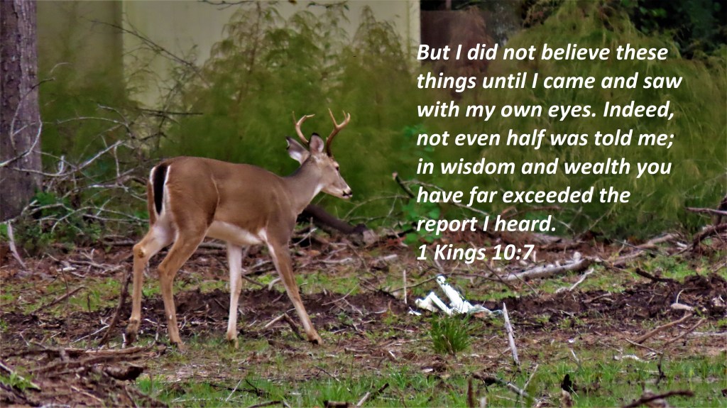 Uncategorized “Believe” Date: November 6, 2021Author: © Christian National Church of Christ 0 Comments But I did not believe these things until I came and saw with my own eyes. Indeed, not even half was told me; in wisdom and wealth you have far exceeded the report I heard. 1 Kings 10:7 Share this: Share on X (Opens in new window) X Share on Facebook (Opens in new window) Facebook Like Loading... Related