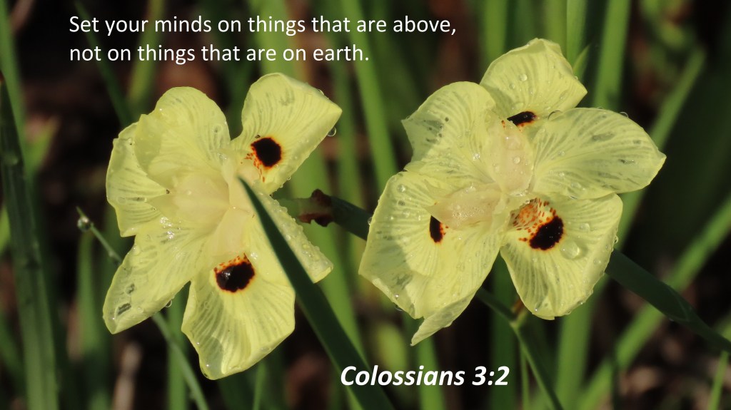 Uncategorized “Having A Alert Mind” Date: November 18, 2021Author: © Christian National Church of Christ 0 Comments Set your minds on things that are above, not on things that are on earth. Colossians 3:2 Share this: Share on X (Opens in new window) X Share on Facebook (Opens in new window) Facebook Like Loading... Related