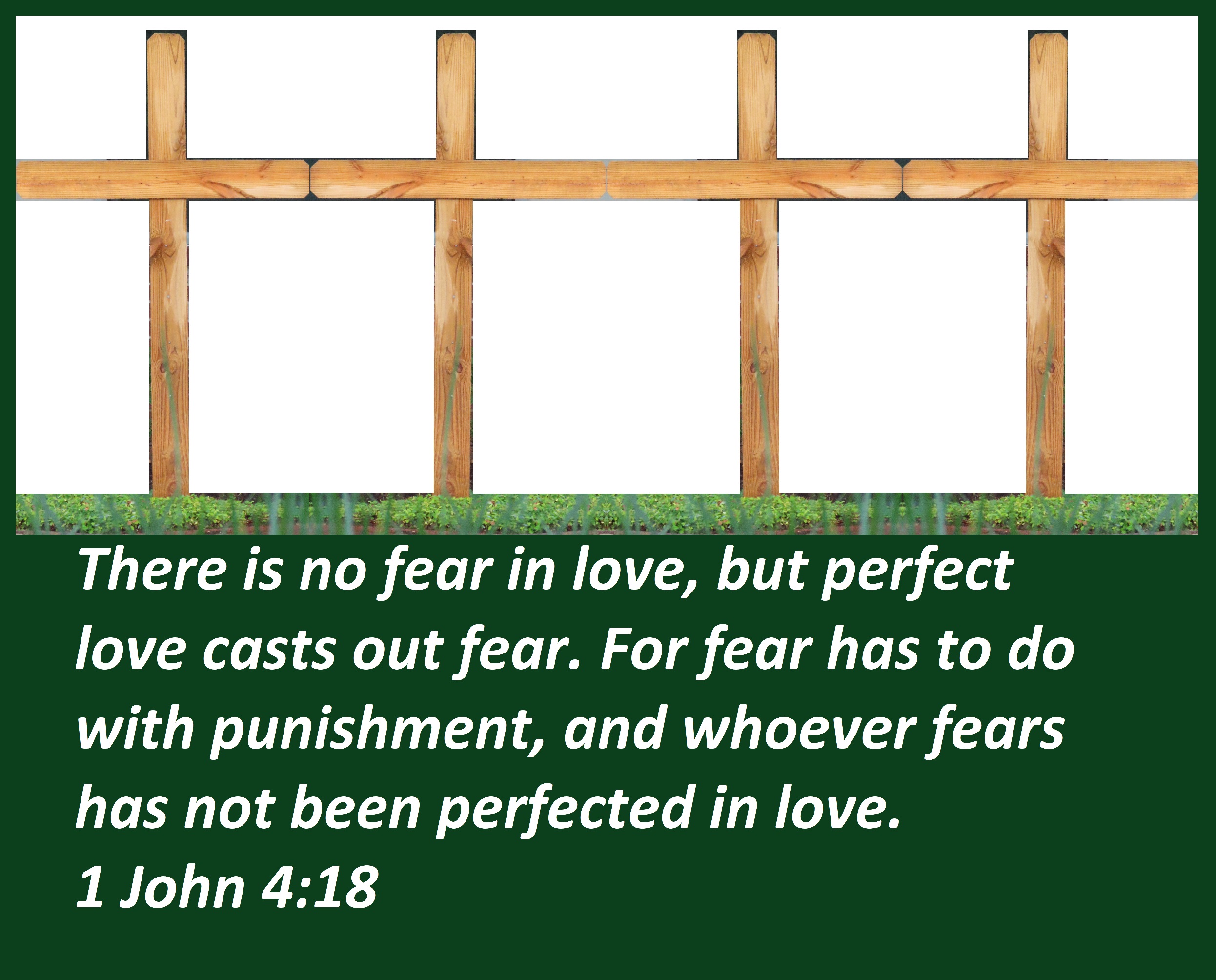 Uncategorized “Perfect Love Casts Out Fear” Date: November 20, 2021Author: © Christian National Church of Christ 0 Comments There is no fear in love, but perfect love casts out fear. For fear has to do with punishment, and whoever fears has not been perfected in love. 1 John 4:18 Share this: Share on X (Opens in new window) X Share on Facebook (Opens in new window) Facebook Like Loading... Related