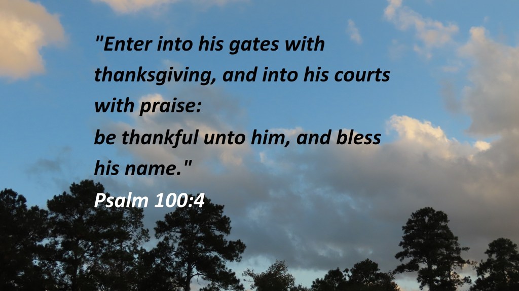 Uncategorized “Thanksgiving” Date: November 25, 2021Author: © Christian National Church of Christ 0 Comments “Enter into his gates with thanksgiving, and into his courts with praise:be thankful unto him, and bless his name.”Psalm 100:4 Share this: Share on X (Opens in new window) X Share on Facebook (Opens in new window) Facebook Like Loading... Related