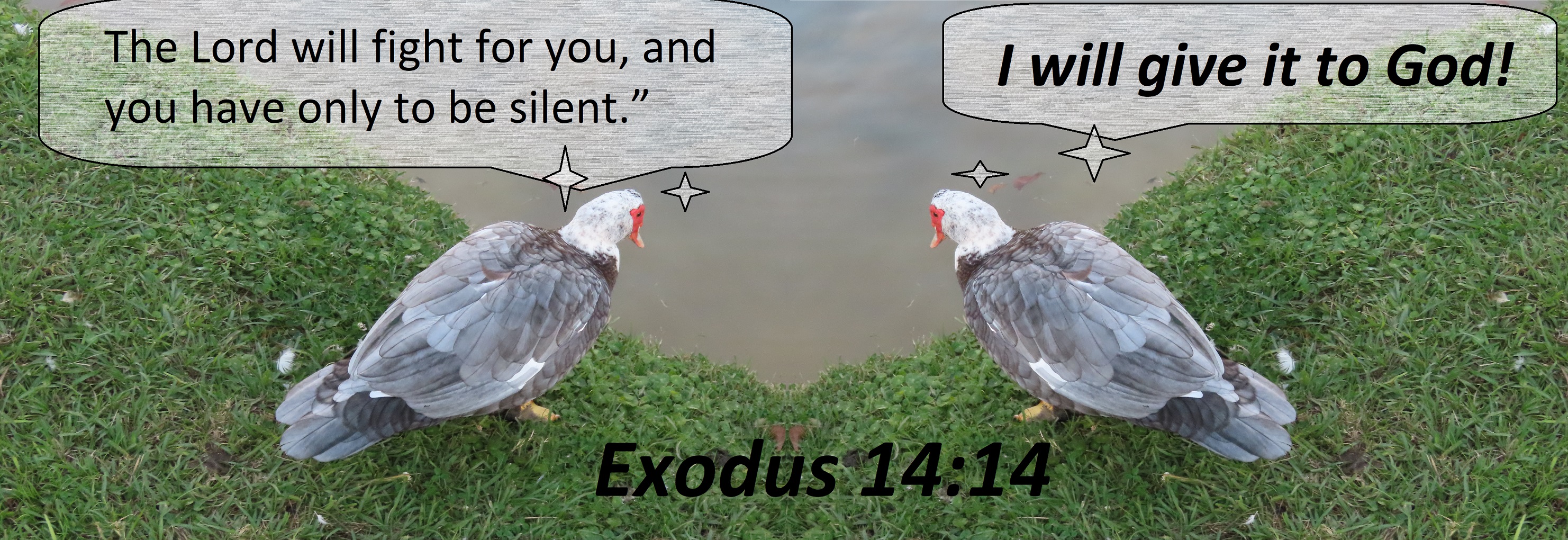 Uncategorized “God Fights for You” Date: December 4, 2021Author: © Christian National Church of Christ 0 Comments The Lord will fight for you, and you have only to be silent.” Exodus 14:14 Share this: Share on X (Opens in new window) X Share on Facebook (Opens in new window) Facebook Like Loading... Related