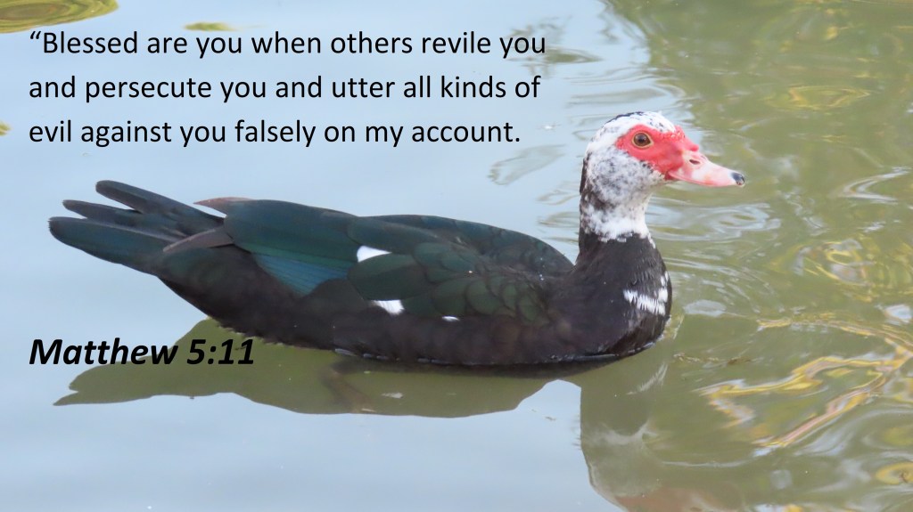 Uncategorized “Blessedness” Date: December 5, 2021Author: © Christian National Church of Christ 0 Comments “Blessed are you when others revile you, persecute you, and utter all kinds of evil against you falsely on my account.” Matthew 5:11 Share this: Share on X (Opens in new window) X Share on Facebook (Opens in new window) Facebook Like Loading... Related