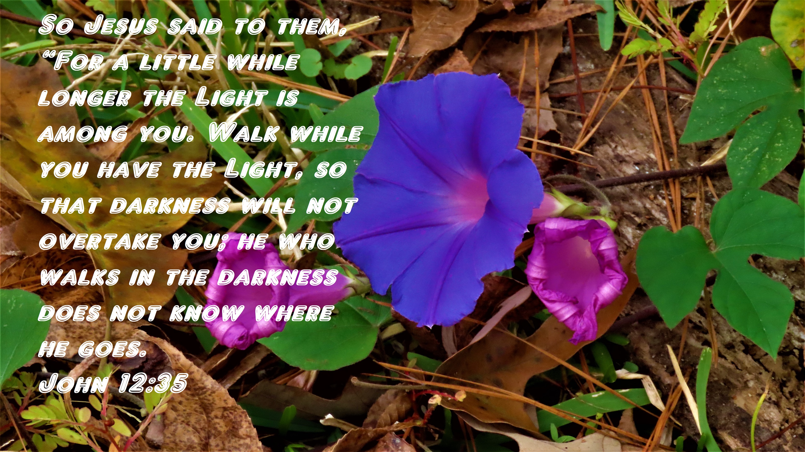 Uncategorized “Walk In The Light” Date: December 19, 2021Author: © Christian National Church of Christ 0 Comments So, Jesus said to them, “For a little while longer the Light is among you. Walk while you have the Light, so that darkness will not overtake you; he who walks in the darkness does not know where he goes. John 12:35 Share this: Share on X (Opens in new window) X Share on Facebook (Opens in new window) Facebook Like Loading... Related