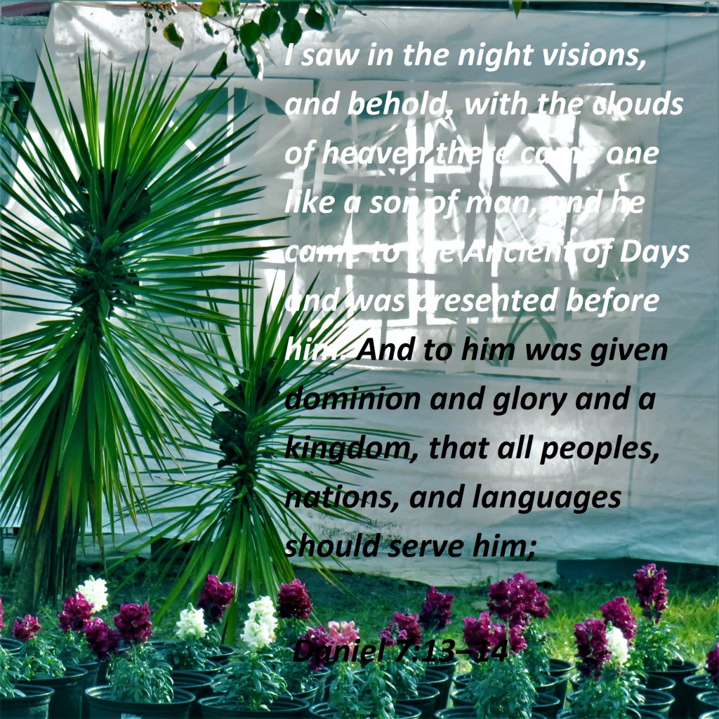 I saw in the night visions, and behold, with the clouds of heaven there came one like a son of man, and he came to the Ancient of Days and was presented before him. And to him was given dominion and glory and a kingdom, that all peoples, nations, and languages should serve him; Daniel 7:13–14