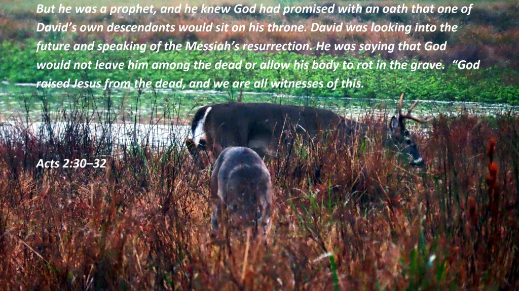But he was a prophet, and he knew God had promised with an oath that one of David’s own descendants would sit on his throne. David was looking into the future and speaking of the Messiah’s resurrection. He was saying that God would not leave him among the dead or allow his body to rot in the grave. “God raised Jesus from the dead, and we are all witnesses of this.