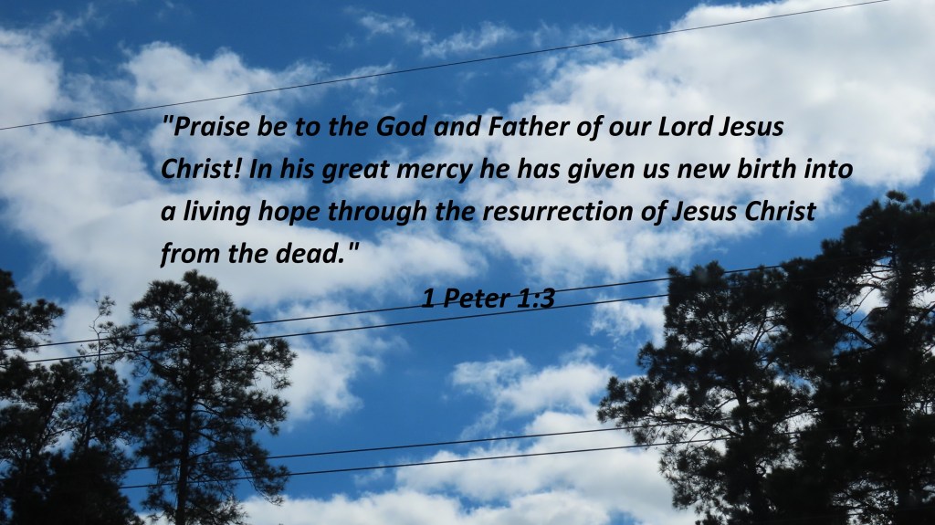 Uncategorized “New Life” Date: April 12, 2022Author: © Christian National Church of Christ 0 Comments “Praise be to the God and Father of our Lord Jesus Christ! In his great mercy he has given us new birth into a living hope through the resurrection of Jesus Christ from the dead.” 1 Peter 1:3 Share this: Share on X (Opens in new window) X Share on Facebook (Opens in new window) Facebook Like Loading... Related