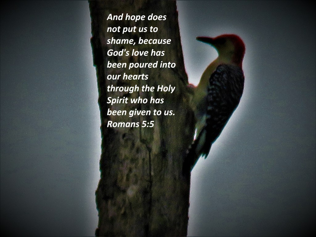 Uncategorized “Hope Pecks Something Great” Date: April 15, 2022Author: © Christian National Church of Christ 0 Comments And hope does not put us to shame, because God’s love has been poured into our hearts through the Holy Spirit who has been given to us. Romans 5:5 Share this: Share on X (Opens in new window) X Share on Facebook (Opens in new window) Facebook Like Loading... Related
