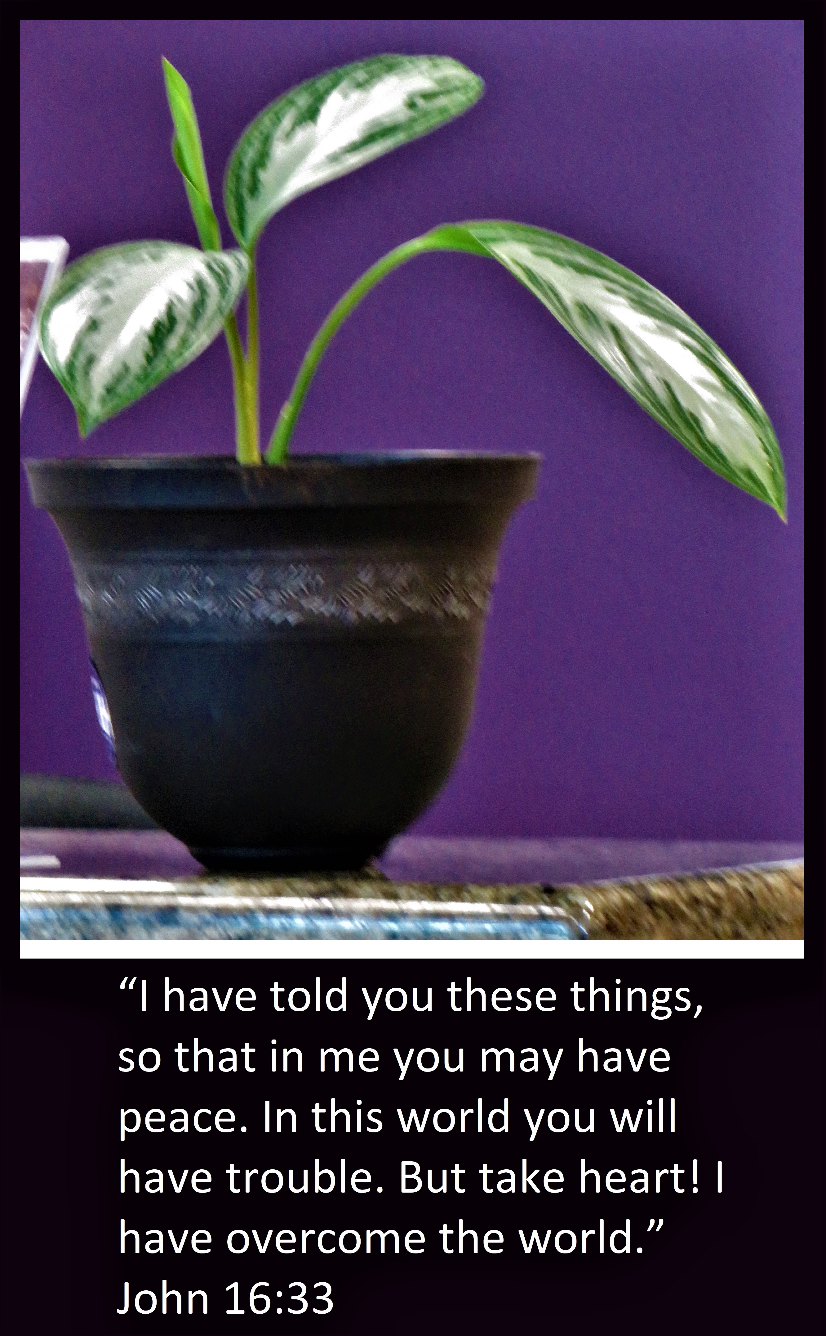 Uncategorized “Peace In Jesus” Date: May 1, 2022Author: © Christian National Church of Christ 0 Comments “I have told you these things, so that in me you may have peace. In this world you will have trouble. But take heart! I have overcome the world.” John 16:33 Share this: Share on X (Opens in new window) X Share on Facebook (Opens in new window) Facebook Like Loading... Related