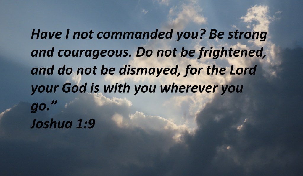 Uncategorized “Strong And Courageous” Date: June 2, 2022Author: © Christian National Church of Christ 0 Comments Have I not commanded you? Be strong and courageous. Do not be frightened, and do not be dismayed, for the Lord your God is with you wherever you go.” Joshua 1:9 Share this: Share on X (Opens in new window) X Share on Facebook (Opens in new window) Facebook Like Loading... Related