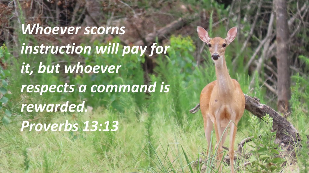 Uncategorized “Self-Control” Date: July 19, 2022Author: © Christian National Church of Christ 0 Comments Whoever scorns instruction will pay for it, but whoever respects a command is rewarded. Proverbs 13:13 Share this: Share on X (Opens in new window) X Share on Facebook (Opens in new window) Facebook Like Loading... Related
