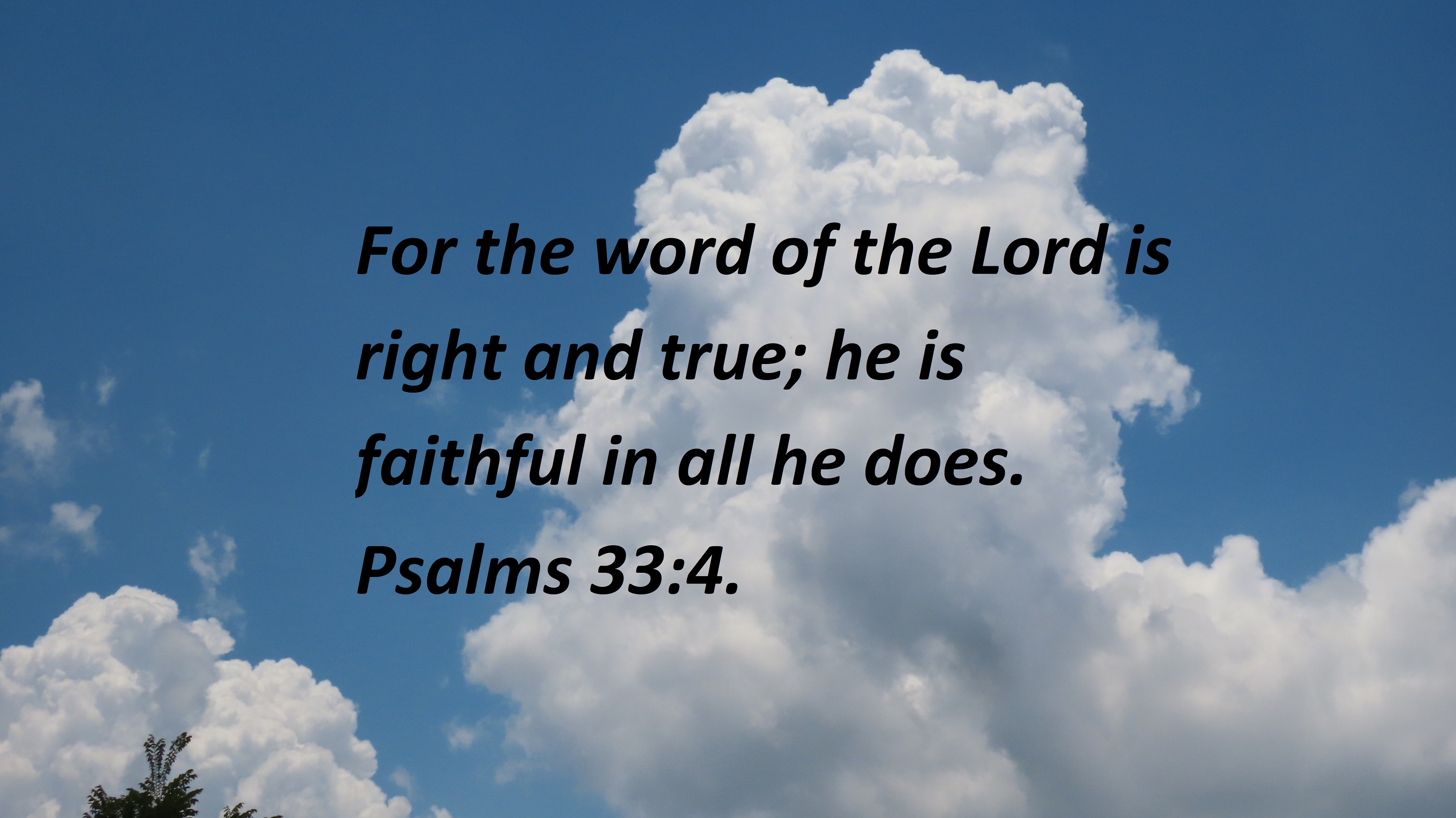Uncategorized “God’s Word Is Righteousness” Date: July 23, 2022Author: © Christian National Church of Christ 0 Comments For the word of the Lord is right and true; he is faithful in all he does. Psalms 33:4 Share this: Share on X (Opens in new window) X Share on Facebook (Opens in new window) Facebook Like Loading... Related