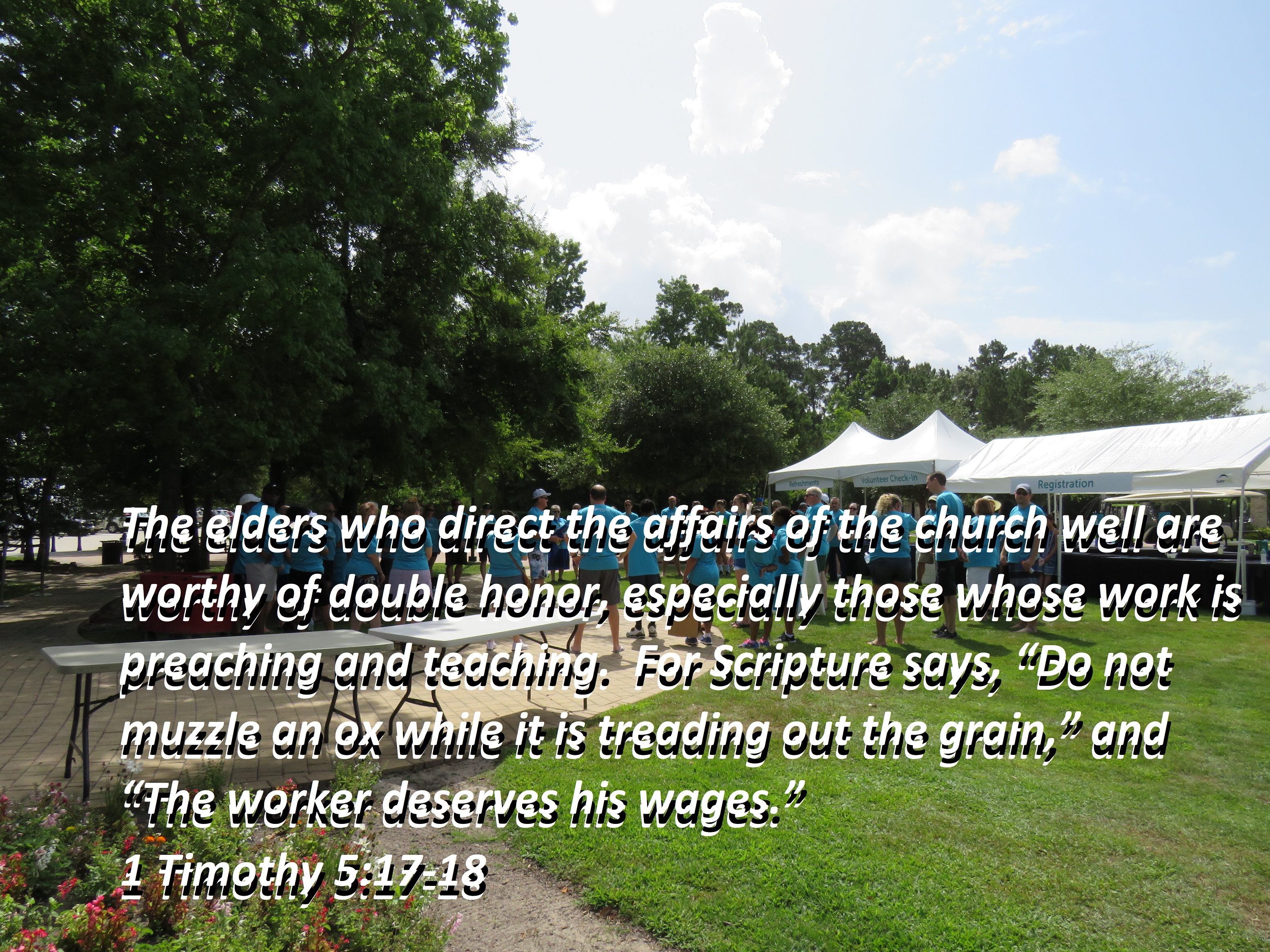 The elders who direct the affairs of the church well are worthy of double honor, especially those whose work is preaching and teaching. For Scripture says, “Do not muzzle an ox while it is treading out the grain,” and “The worker deserves his wages.”