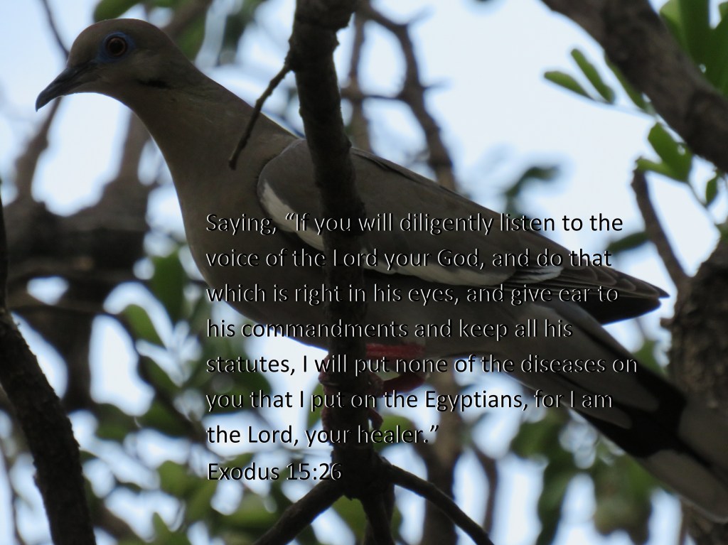 Saying, “If you will diligently listen to the voice of the Lord your God, and do that which is right in his eyes, and give ear to his commandments and keep all his statutes, I will put none of the diseases on you that I put on the Egyptians, for I am the Lord, your healer.” Exodus 15:26