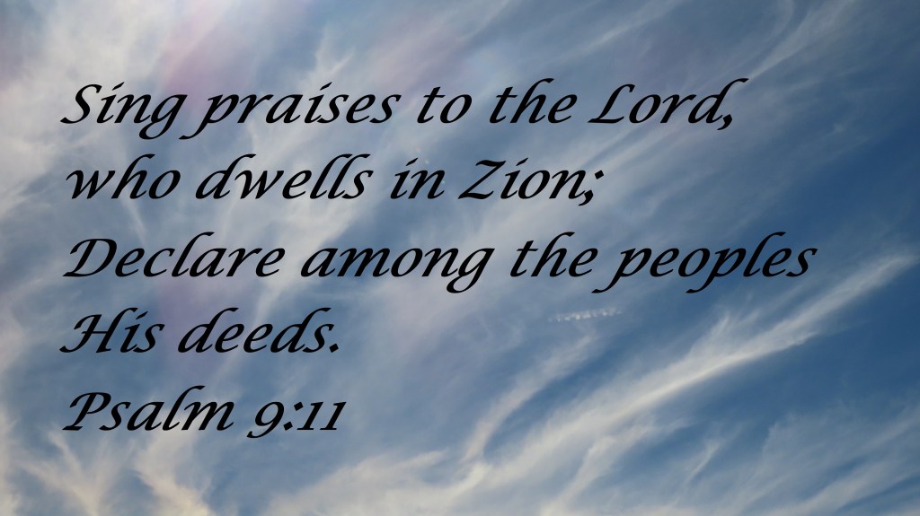 Uncategorized “Sing 911 God!” Date: September 10, 2022Author: © Christian National Church of Christ 0 Comments Sing praises to the Lord, who dwells in Zion;Declare among the peoples His deeds.Psalm 9:11 Share this: Share on X (Opens in new window) X Share on Facebook (Opens in new window) Facebook Like Loading... Related