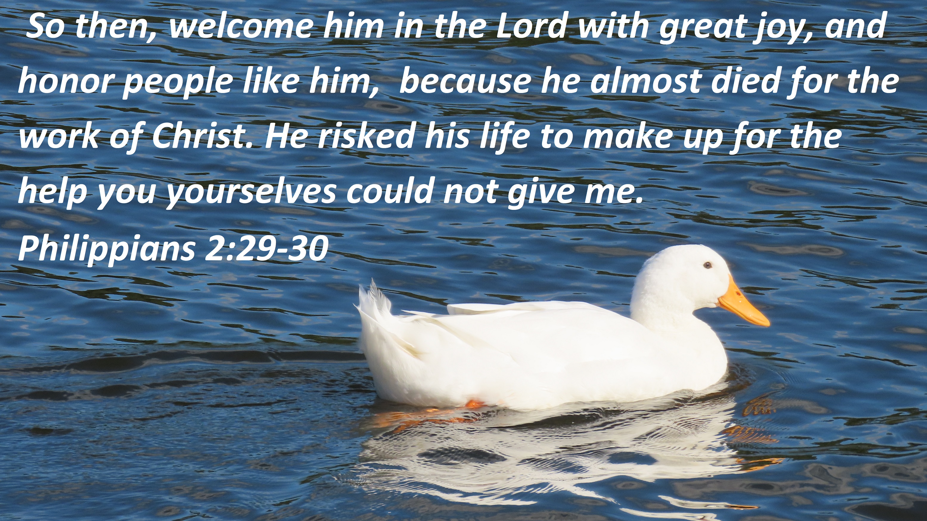 So then, welcome him in the Lord with great joy, and honor people like him, because he almost died for the work of Christ. He risked his life to make up for the help you yourselves could not give me.