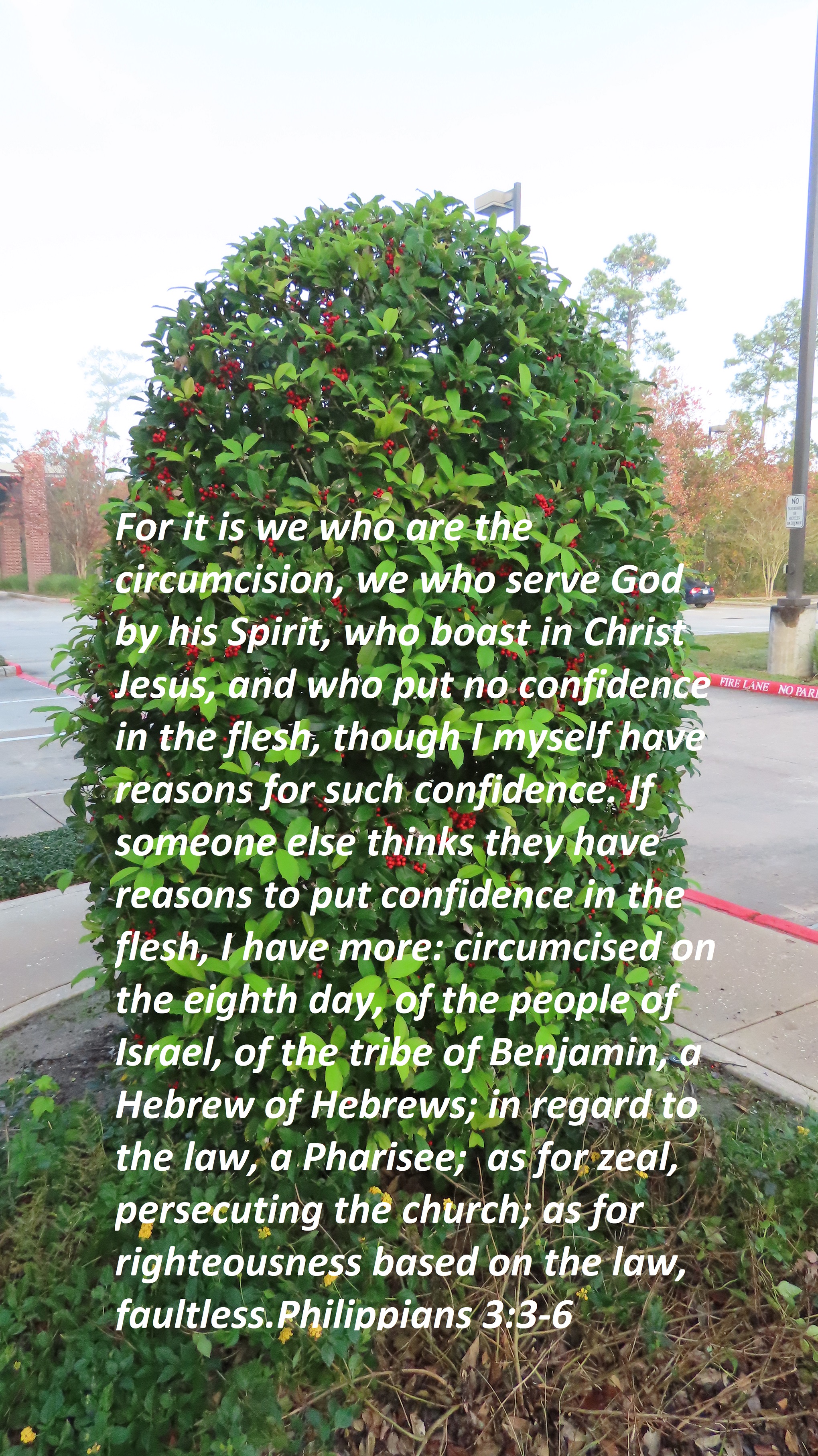 For it is we who are the circumcision, we who serve God by his Spirit, who boast in Christ Jesus, and who put no confidence in the flesh, though I myself have reasons for such confidence. If someone else thinks they have reasons to put confidence in the flesh, I have more: circumcised on the eighth day of the people of Israel, of the tribe of Benjamin, a Hebrew of Hebrews; in regard to the law, a Pharisee; as for zeal, persecuting the church; as for righteousness based on the law, faultless.