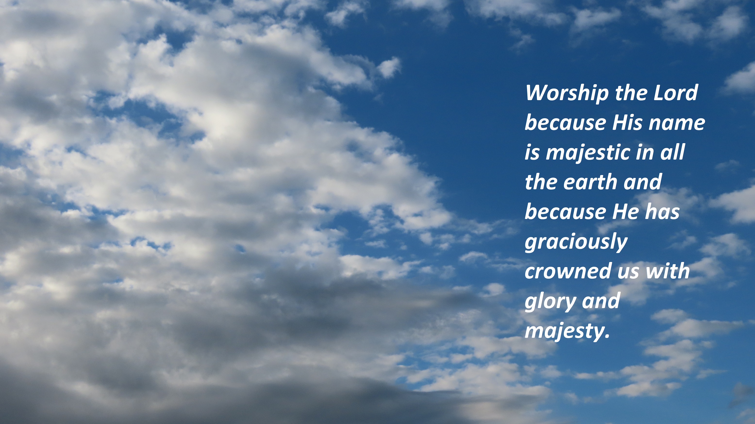 A psalm of David. how majestic is your name in all the earth! In the heavens. to silence the foe and the avenger. And crowned them with glory and honor. all that swim the paths of the seas. David is exhorting us to… Worship the Lord because His name is majestic in all the earth and because He has graciously crowned us with glory and majesty. Worship the Lord because His name is majestic in all the earth