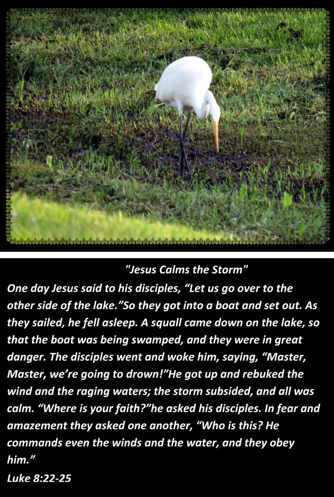 One day Jesus said to his disciples, “Let us go over to the other side of the lake. “So, they got into a boat and set out. As they sailed, he fell asleep. A squall came down on the lake, so that the boat was being swamped, and they were in great danger. The disciples went and woke him, saying, “Master, Master, we’re going to drown! “He got up and rebuked the wind and the raging waters; the storm subsided, and all was calm. “Where is your faith? “He asked his disciples. In fear and amazement, they asked one another, “Who is this? He commands even the winds and the water, and they obey him.”