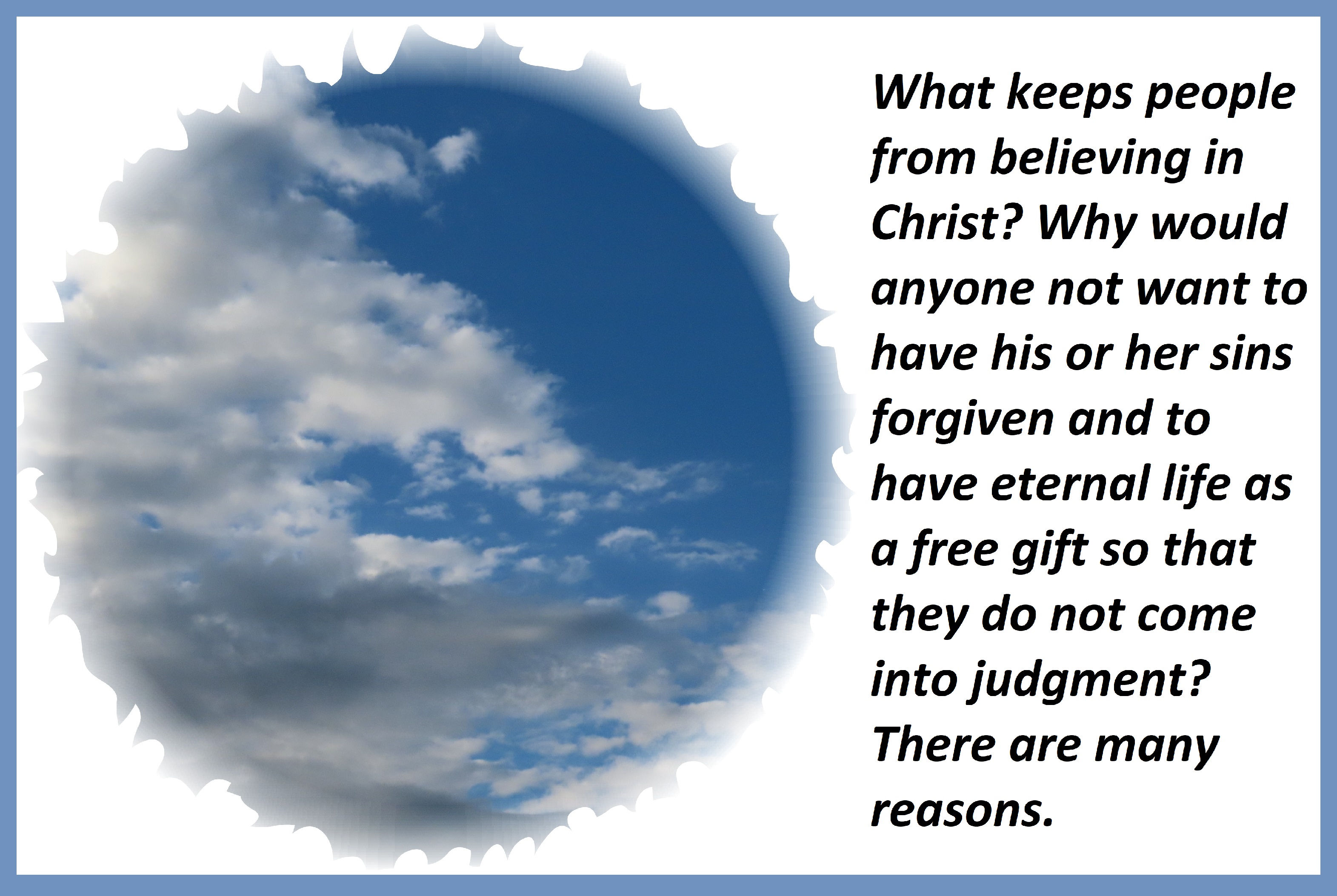 What keeps people from believing in Christ? Why would anyone not want to have his or her sins forgiven and to have eternal life as a free gift so that they do not come into judgment? There are many reasons.