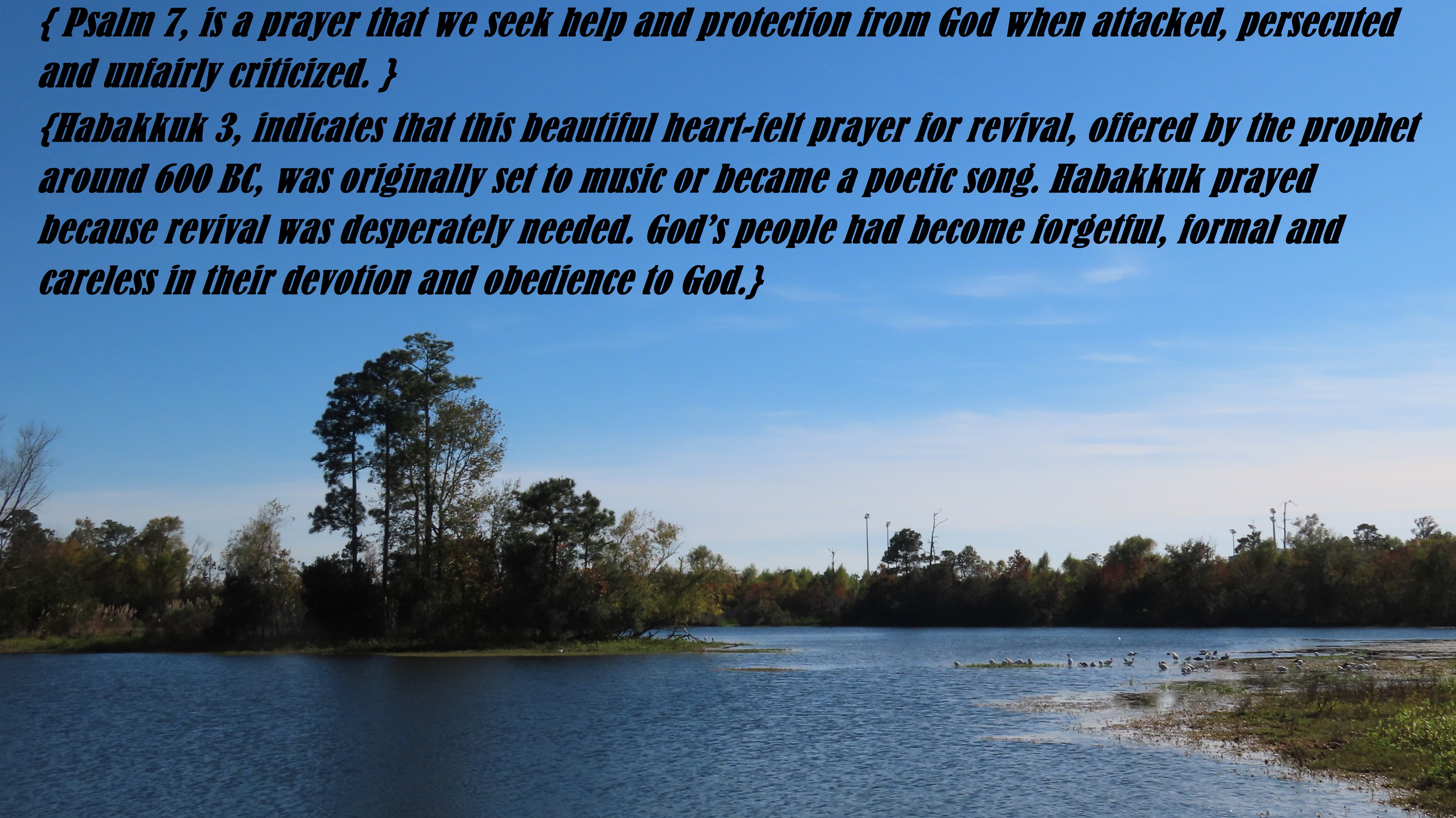 {Habakkuk 3, indicates that this beautiful heart-felt prayer for revival, offered by the prophet around 600 BC, was originally set to music or became a poetic song. Habakkuk prayed because revival was desperately needed. God’s people had become forgetful, formal and careless in their devotion and obedience to God.}