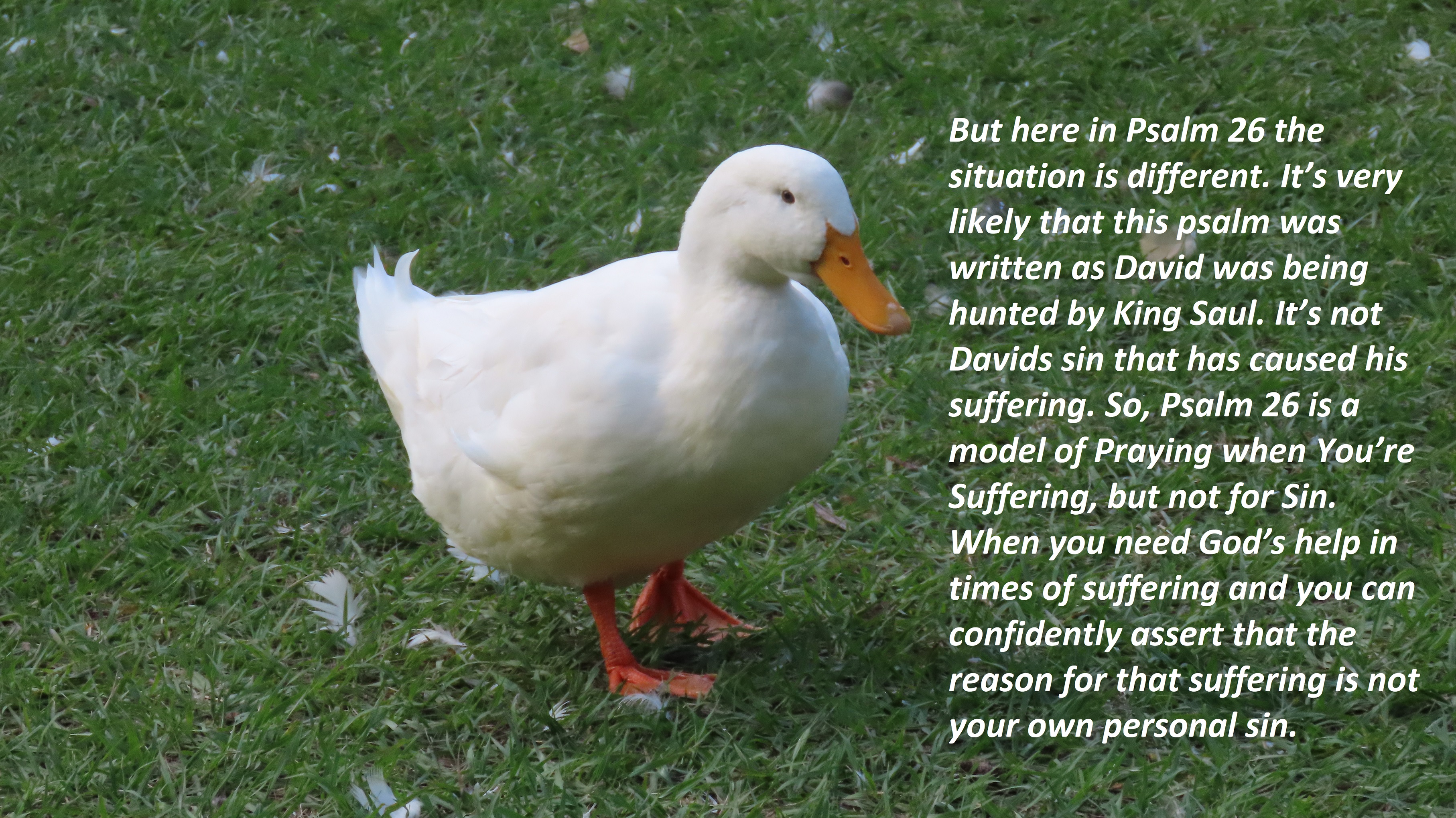 In Psalm 25, David is suffering as a result of his sin with Bathsheba. So, he seeks God in prayer in the context of the guilt and danger that situation would have brought to his life. But here in Psalm 26 the situation is different. It’s very likely that this psalm was written as David was being hunted by King Saul. It’s not Davids sin that has caused his suffering. So, Psalm 26 is a model of Praying when You’re Suffering, but not for Sin. When you need God’s help in times of suffering, and you can confidently assert that the reason for that suffering is not your own personal sin. There are times when we are experiencing a great deal of trouble in this life. Prayer life that defeats sin and enemies is putting it in the Lords hands and leaving it there. Then wait on the Lord.