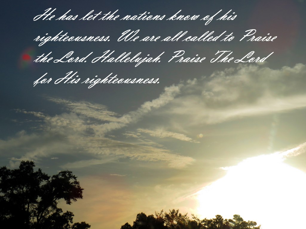 The Lord is showing us every moment of everyday that He is good to us. From the moment we wake up in the morning to the next day that we wake up in the morning. If you wake up with nothing in your body but the air that you are breathing. God is good. Every moment we are getting His gift of life. We rely on God first in everything we do or say during the day. God marvelously made us and the earth we walk on. Singing a new song every morning. The Lord has revealed to us His righteousness, love, joy and Salvation. Psalm 98 is a praise song of The Lords righteousness and judgement. The Lords marvelous deeds has gained victory with His right hand and Holy arm. He has let the nations know of his righteousness. We are all called to Praise the Lord. Hallelujah. Praise The Lord for His righteousness. No one is sure who wrote Psalm 98 what was found was some writers in the books of Psalm were composed by a couple of Levitical singing groups called Asaph and Korah. This is a perfect Psalm for the end of Easter Season looking back at it is finished and Jesus’ victory over death. Jesus walked the earth 40 days after the resurrection. The feast takes place 40 days after Easter to demonstrate to His disciples that He was truly alive. The liturgical colors are white. Pentecost is celebrated 50 days after Easter and is when Christians remember the gift of the Holy Spirit. Praise the Lord Hallelujah!