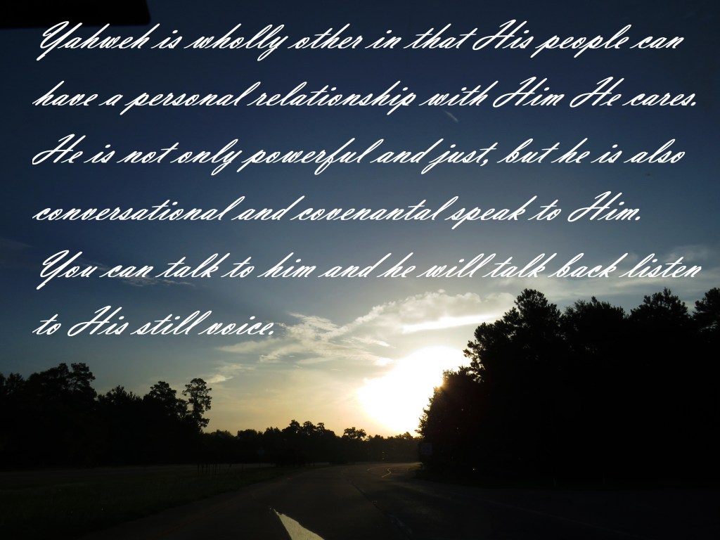 Psalm is a sacred song or hymn, in particular any of those contained in the biblical Book of Psalms and used in Christian and Jewish worship: In Psalm 99 the psalms attributed to David may have originated or been associated with David but may have also included assistance from others. Picking up on the original sense of holiness, the idea that the Lord is “wholly other,” ( to the full or entire extent: completely) This Psalm focuses on the three crucial ways in which Yahweh is completely different than anything in all creation, especially other lords and kings and gods. Yahweh is wholly other in that His people can have a personal relationship with Him He cares. He is not only powerful and just, but he is also conversational and covenantal speak to Him. You can talk to Him, and He will talk back listen to His still voice. Praise Yahweh’s {The Lord} awesome name.