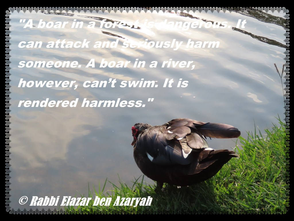 “A boar in a forest is dangerous. It can attack and seriously harm someone. A boar in a river, however, can’t swim. It is rendered harmless.”