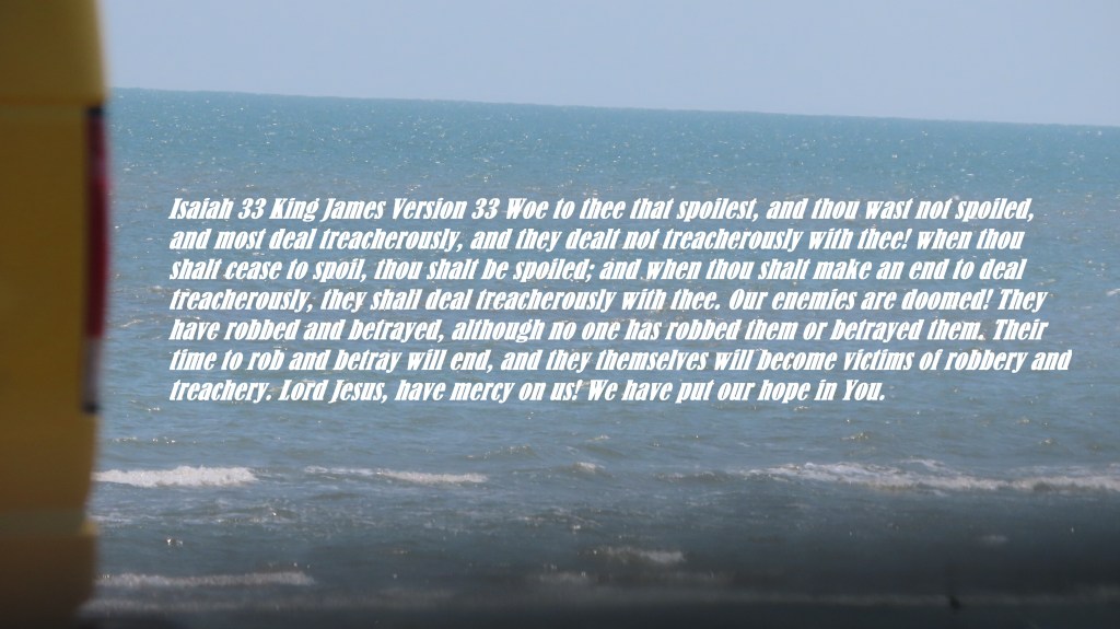 Isaiah 33 King James Version 33 Woe to thee that spoilest, and thou wast not spoiled, and most deal treacherously, and they dealt not treacherously with thee! when thou shalt cease to spoil, thou shalt be spoiled; and when thou shalt make an end to deal treacherously, they shall deal treacherously with thee. Our enemies are doomed! They have robbed and betrayed, although no one has robbed them or betrayed them. Their time to rob and betray will end, and they themselves will become victims of robbery and treachery. Lord Jesus, have mercy on us! We have put our hope in You.