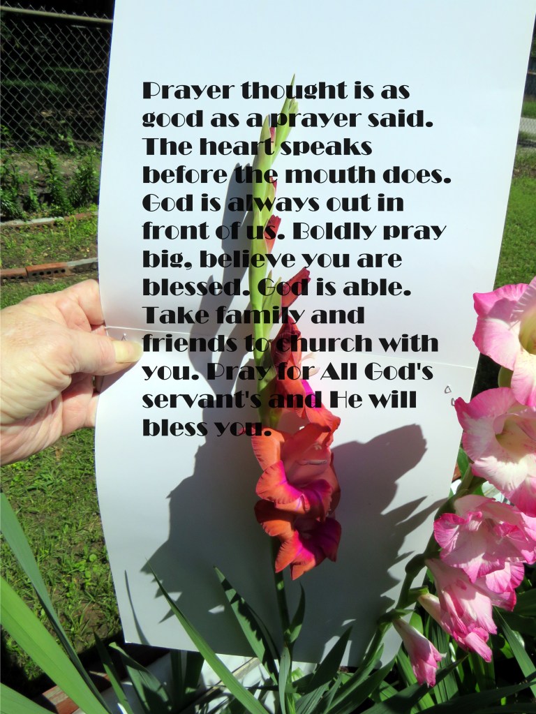 Prayer thought is as good as a prayer said. The heart speaks before the mouth does. God is always out in front of us. Boldly pray big, believe you are blessed. God is able. Take family and friends to church with you. Pray for All God’s servant’s and He will bless you.