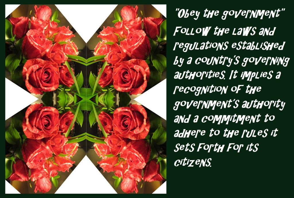 Follow the laws and regulations established by a country’s governing authorities. It implies a recognition of the government’s authority and a commitment to adhere to the rules it sets forth for its citizens.