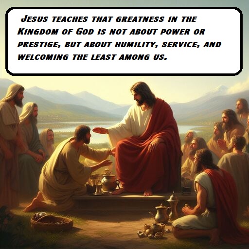 Jesus teaches that greatness in the Kingdom of God is not about power or prestige, but about humility, service, and welcoming the least among us.