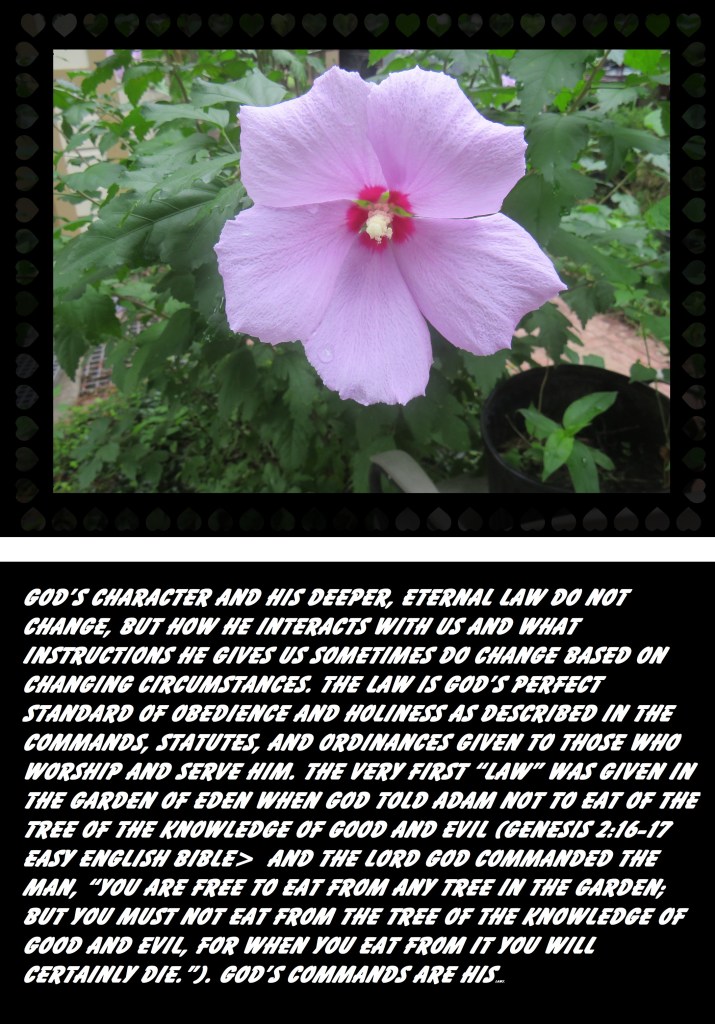 God’s character and his deeper, eternal Law do not change, but how he interacts with us and what instructions he gives us sometimes do change based on changing circumstances. The law is God’s perfect standard of obedience and holiness as described in the commands, statutes, and ordinances given to those who worship and serve Him. The very first “law” was given in the Garden of Eden when God told Adam not to eat of the tree of the knowledge of good and evil (Genesis 2:16-17 Easy English Bible> And the Lord God commanded the man, “You are free to eat from any tree in the garden; but you must not eat from the tree of the knowledge of good and evil, for when you eat from it you will certainly die.”). God’s commands are His laws.