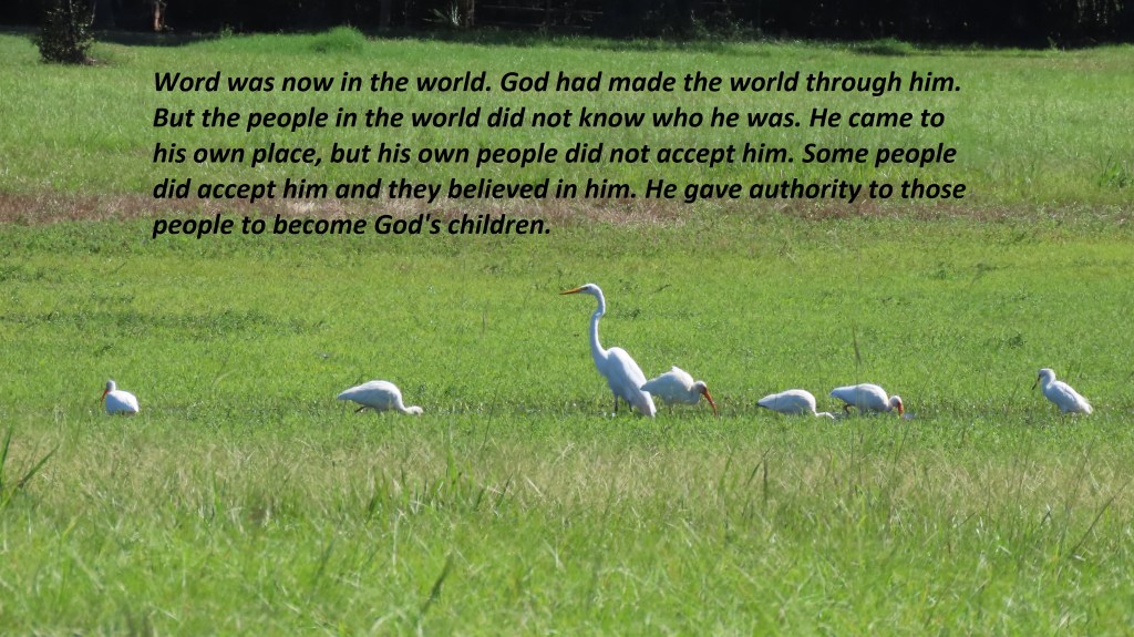 It reads in John 1:1-18 EASY> In the beginning, the Word was already there. The Word was with God. The Word was God. He was with God from the beginning. God made all things through the Word. God did not make anything without him. It is the Word that caused everything to live. Because of this, he has brought light to all people. The light shines in the dark, and the dark cannot put out the light. God sent a man to bring his message. His name was John. He came to tell people about the light. God wanted everyone to believe in the one who is the light. John himself was not that light. God sent him to tell people about the light. The true light gives light to every person. That light was now coming into the world. The Word was now in the world. God had made the world through him. But the people in the world did not know who he was. He came to his own place, but his own people did not accept him. Some people did accept him and they believed in him. He gave authority to those people to become God’s children. They did not become God’s children in the usual human way. They were not born because some people wanted to have children. They were not born because of what any man decided. No! They were born from God. The Word became a man. He lived among us. We saw his great glory. He has the glory of the Father’s one true Son. He is full of God’s grace and truth. John told people about the Word. He shouted, ‘This is the man that I told you about. He comes after me. But he is greater than I am. He was already there before I was born.’ The Word is full of everything that we need. We have all received one good thing after another good thing. God gave his Law to us through Moses. But Jesus Christ brought God’s grace and his truth to us. Nobody has ever seen God. But God’s only Son has shown God to us. He is very near to the Father, and he is God.